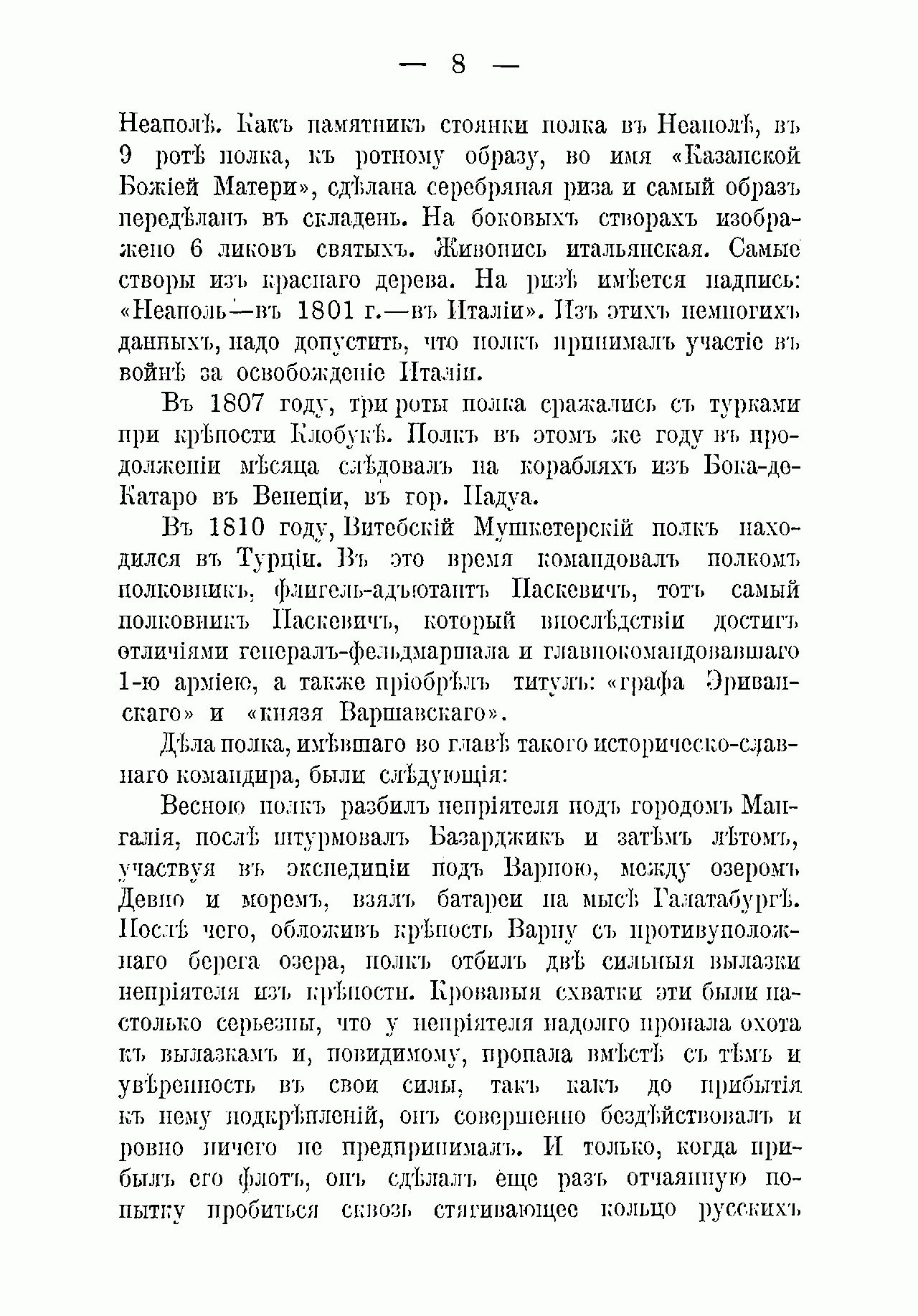 В памятке, наряду с краткой исторической справкой, приводятся данные о полковых и ротных праздниках, святынях, реликвиях и отличиях полка.
