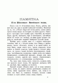 Памятка подготовлена в рамках «умственного и нравственного развития солдат» во имя их служения «Престолу и Отечеству», формирования основ «полкового братства» среди нижних чинов. В кратком предисловии указывается: «Каждый солдат обязан знать, где и когда началась жизнь полка, в каких землях развивались знамёна его полка, какие трудности полк вынес, где, когда и с кем он был в схватках боевых…».