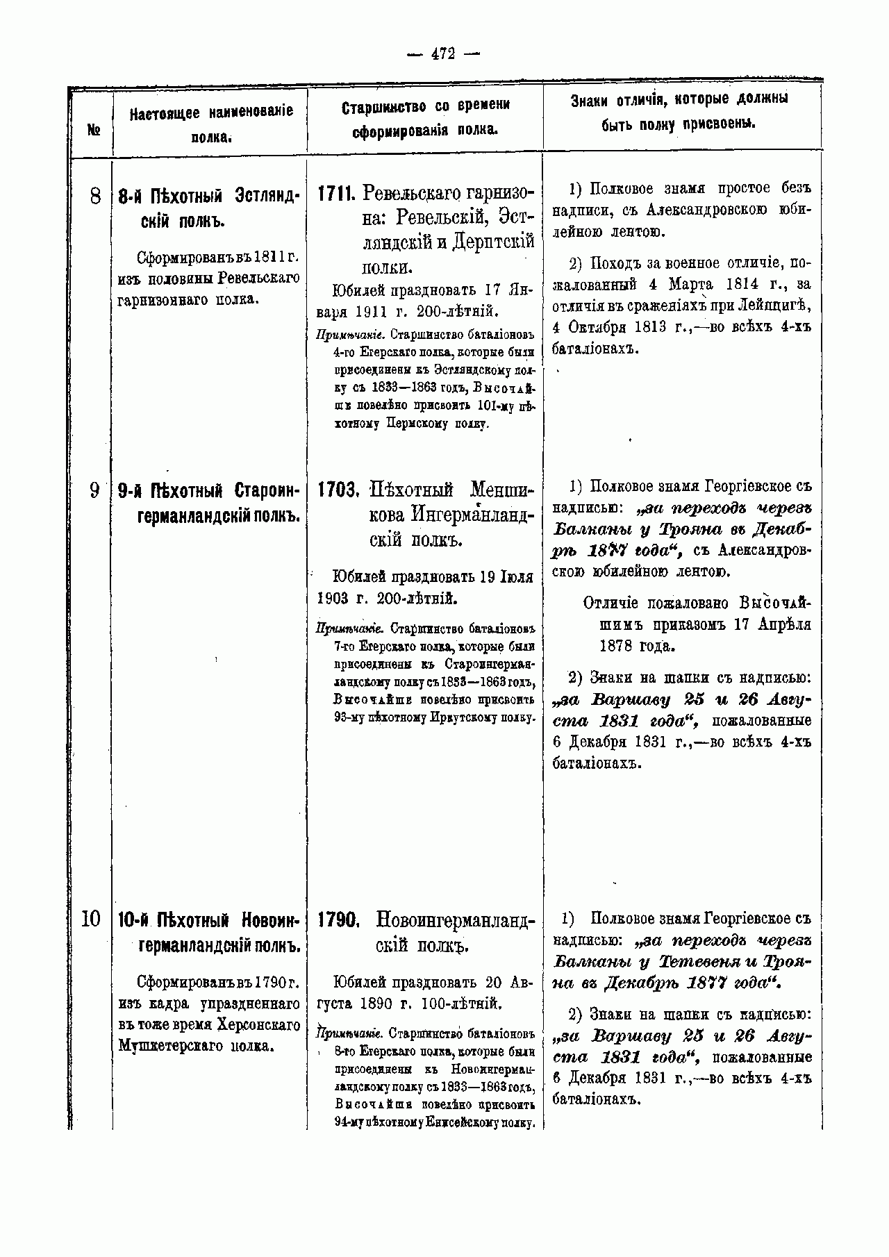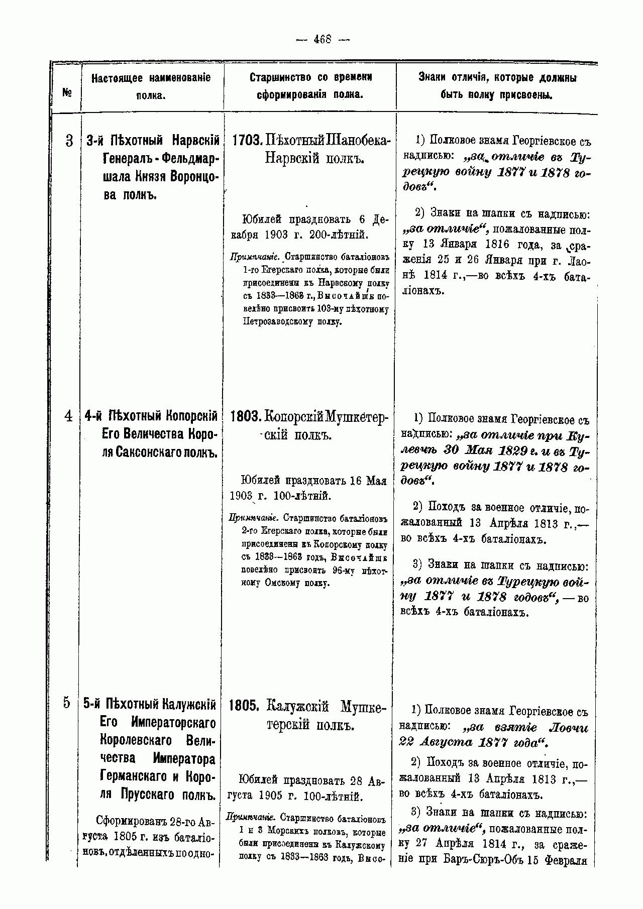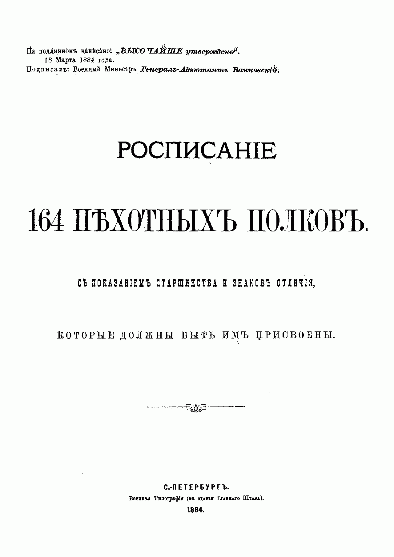 Расписание 164 пехотных полков, с показанием старшинства и знаков отличия, которые должны быть им присвоены
