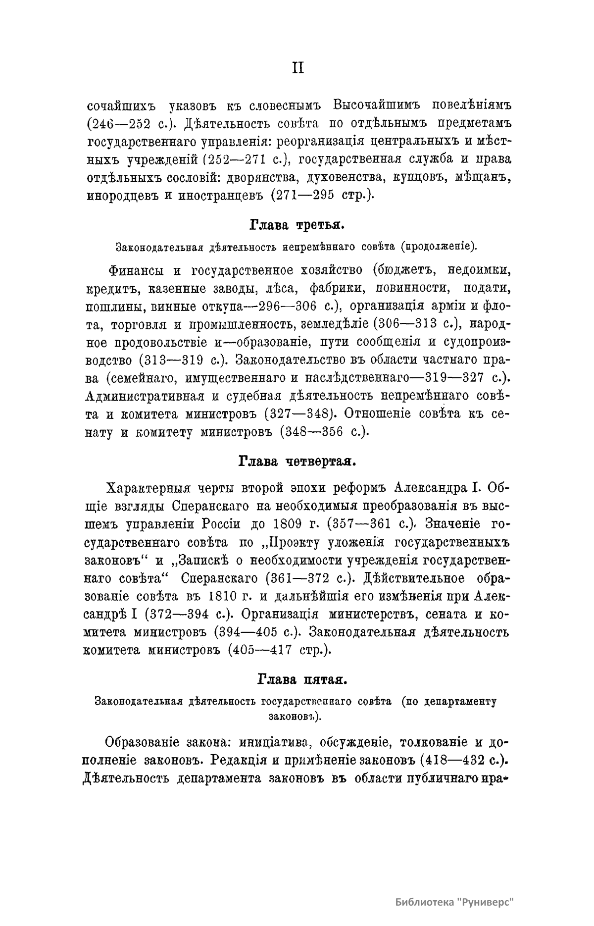 Второй том является продолжением исследования о Государственном Совете в России. В настоящий труд автор включил новый архивный материал по истории высшего управления в XVIII веке и образованию Государственного Совета в царствование Александра I.