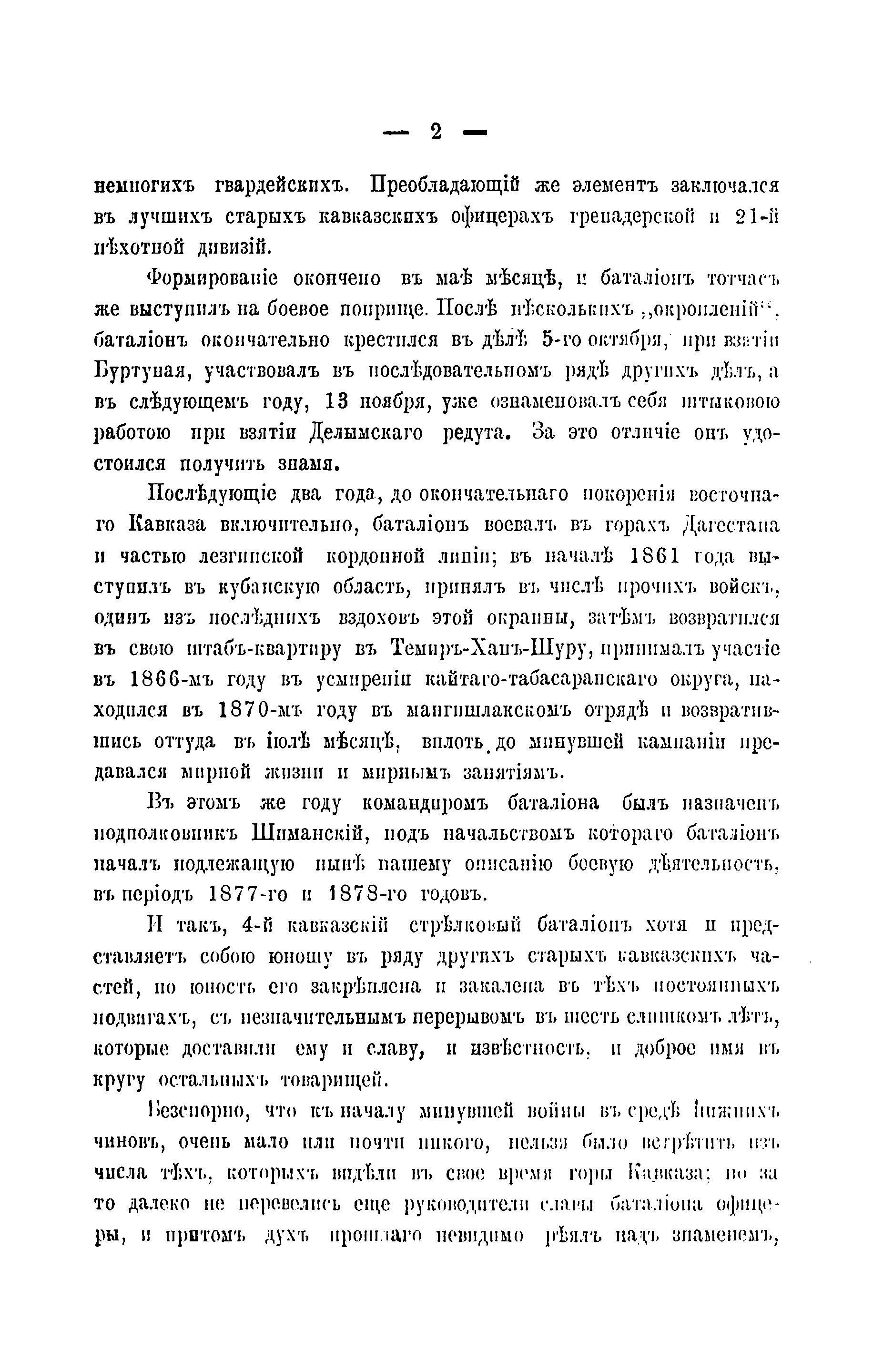Описанiе боевой жизни 4-го Кавказскаго стрелковаго баталiона в минувшую войну 1877-1878-го годовъ