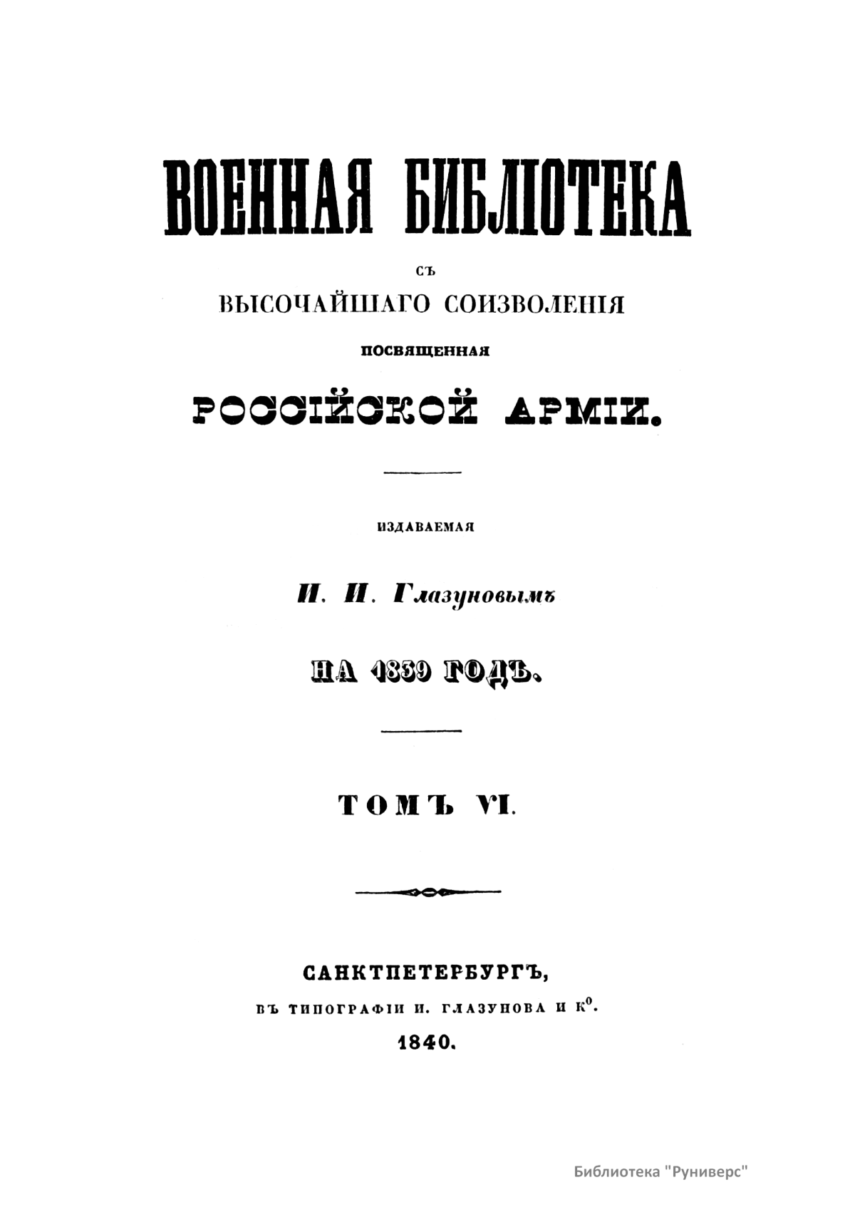 Военная библiотека, съ высочайшаго соизволенiя посвященная российской армiи. Томъ VI