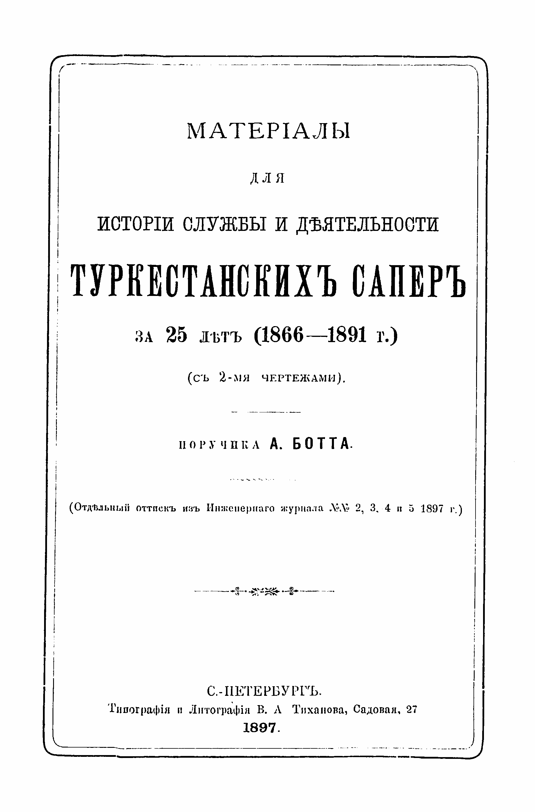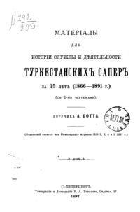 Матерiалы для исторiи службы и дѣятельности Туркестанскихъ саперъ за 25 лѣт (1866-1891г.)