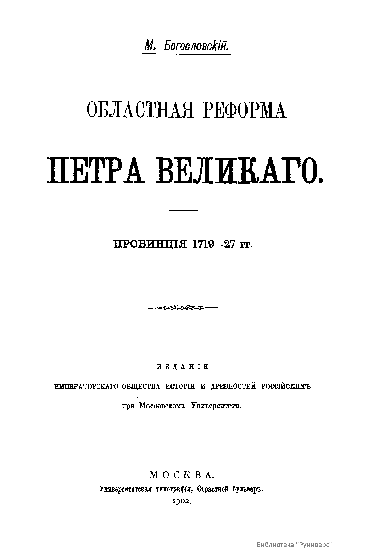 Областная реформа Петра Великаго. Провинцiя 1719-27 гг.