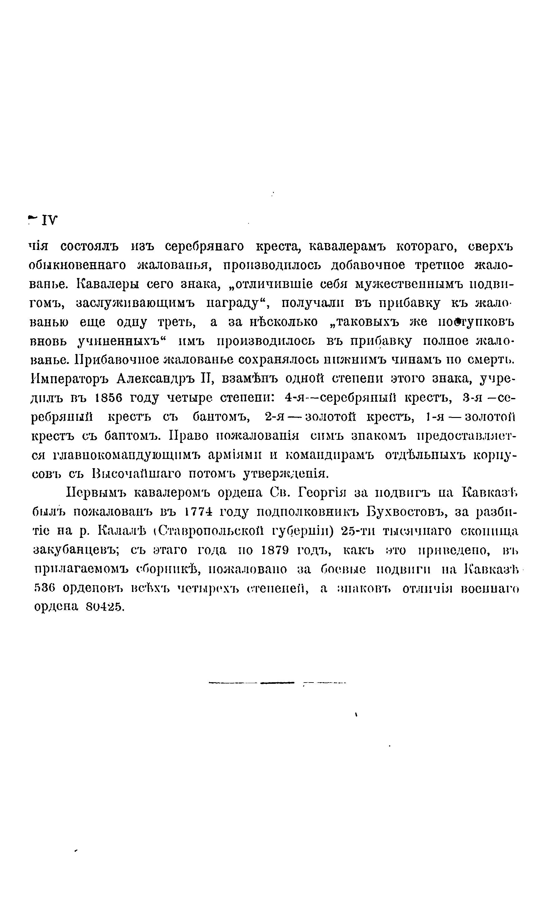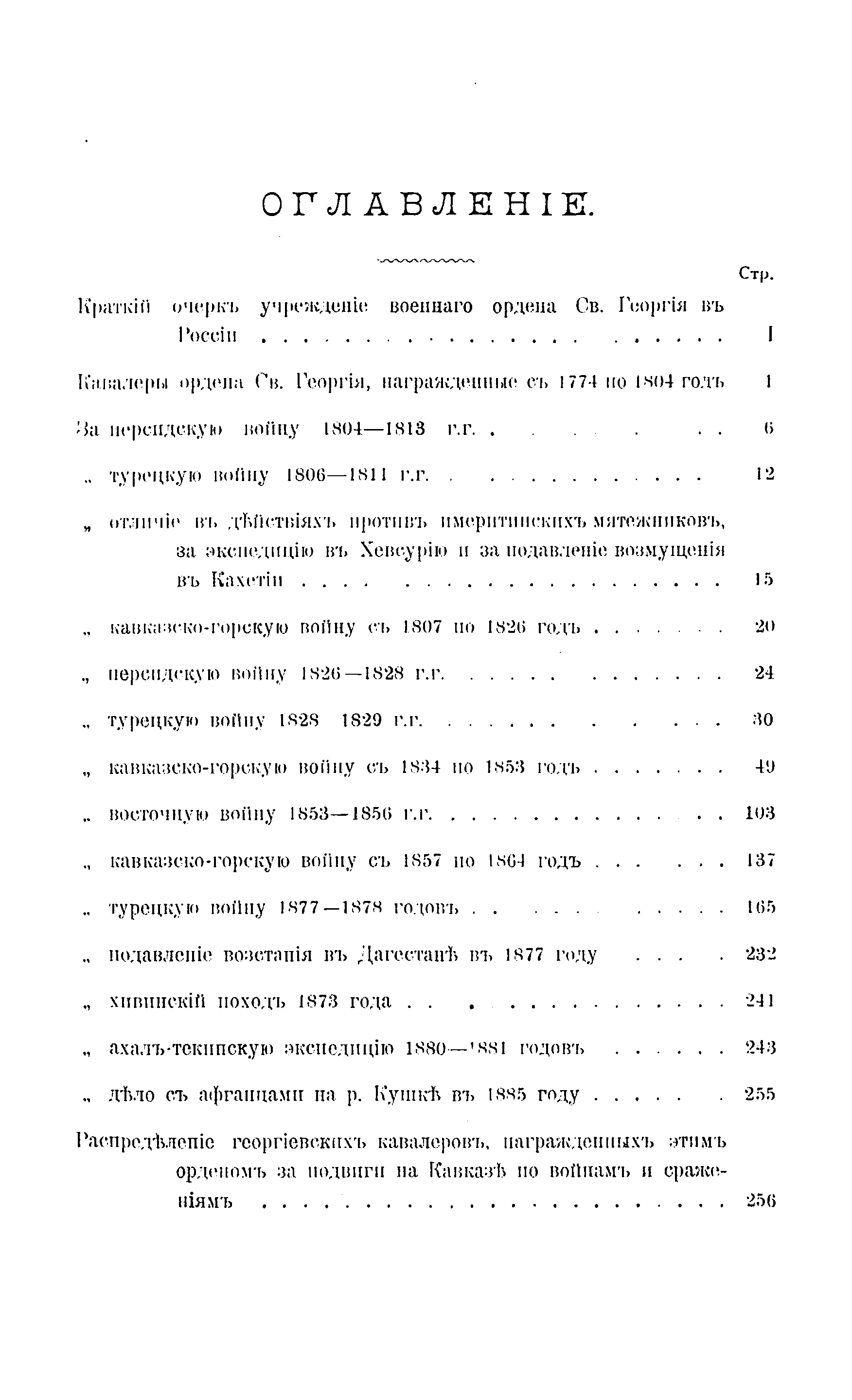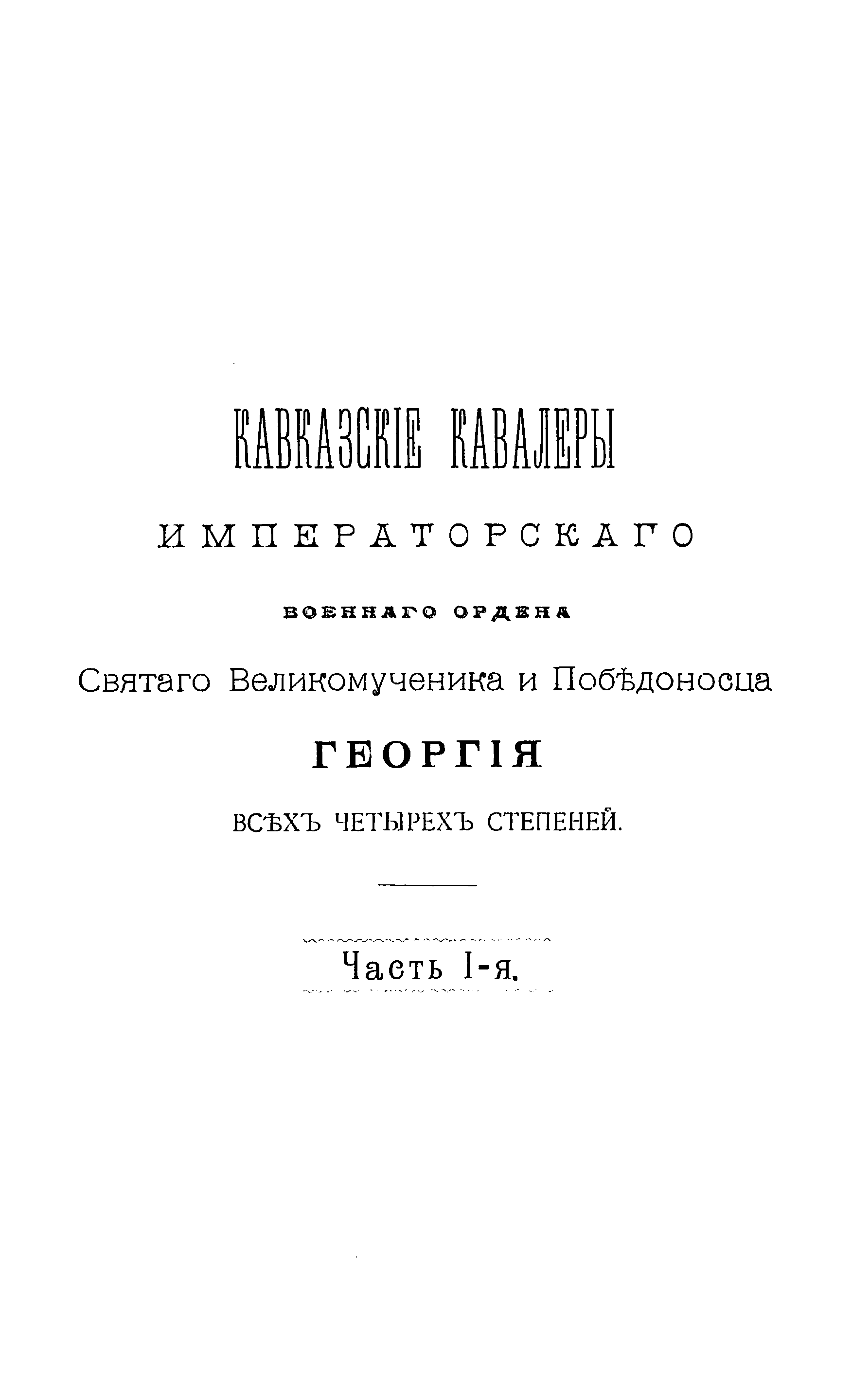 Представленное издание является органичной составной частью многолетней программы изучения боевых действий, устройства, организации и развития регулярных войск российской императорской армии на Кавказе, проводившейся военно-историческим отделом при штабе Кавказского военного округа. Ряд исследований на эту тему уже были помещены на нашем сайте. Настоящее исследование известного историка войн России на Кавказе генерал-майора в отставке А.Л. Гизетти, который в течение длительного времени занимался изучением этой темы, разделено автором на две части. Приведенные в первой части сведения о кавалерах, получивших орден Святого Георгия за воинские заслуги во время боевых действий на Кавказе, были собраны из указов Императора, постановлений георгиевских дум, журналов боевых действий, наградных представлений, находившихся среди документов архива штаба Кавказского военного округа и Военно-Ученого архива Генерального Штаба. Во второй части труда приведены данные о боевых знаках отличия, пожалованных частям российских войск, проходивших службу на Кавказе, а также вооруженным формированиям, созданным из представителей разных народов Кавказа. В книге приводятся данные о награждениях российских воинов и полководцев орденом Святого Георгия за успехи в боевой деятельности на Кавказе с момента учреждения этой высшей военной награды в 1774 г. вплоть до 1880-х гг. За более чем столетний период награждений всего было пожаловано этим высшим военным орденом 536 человек. Среди них первой и второй степенью ордена были удостоены главнокомандующие российскими войсками на Кавказе генерал-фельдмаршалы граф И.Ф. Паскевич-Эриванский и великий князь Михаил Николаевич.