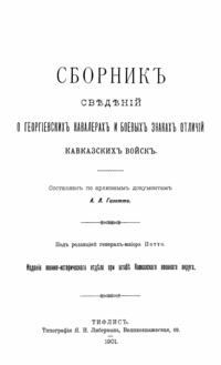 Сборникъ свѣдѣний о Георгiевскихъ кавалерахъ и боевыхъ знакахх отличiй Кавказскихъ войскъ