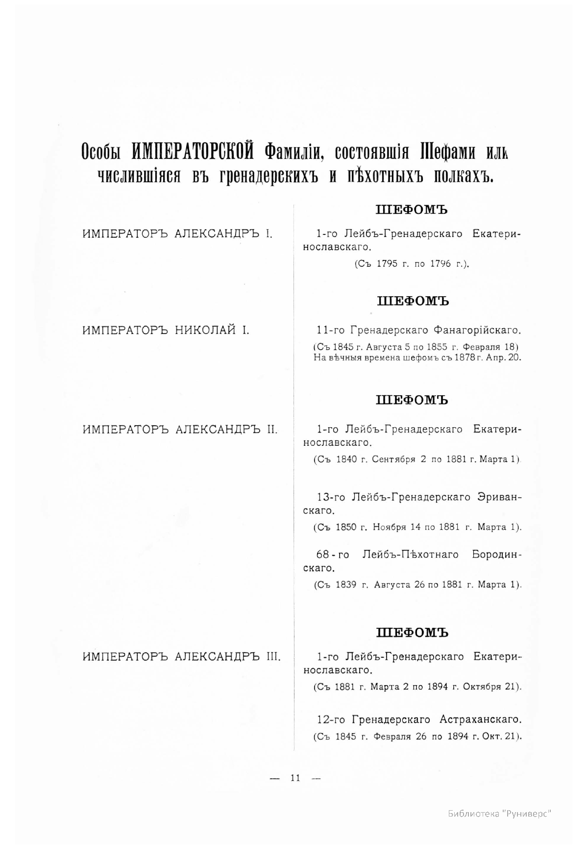Гренадерскiе и Пѣхотные Полки