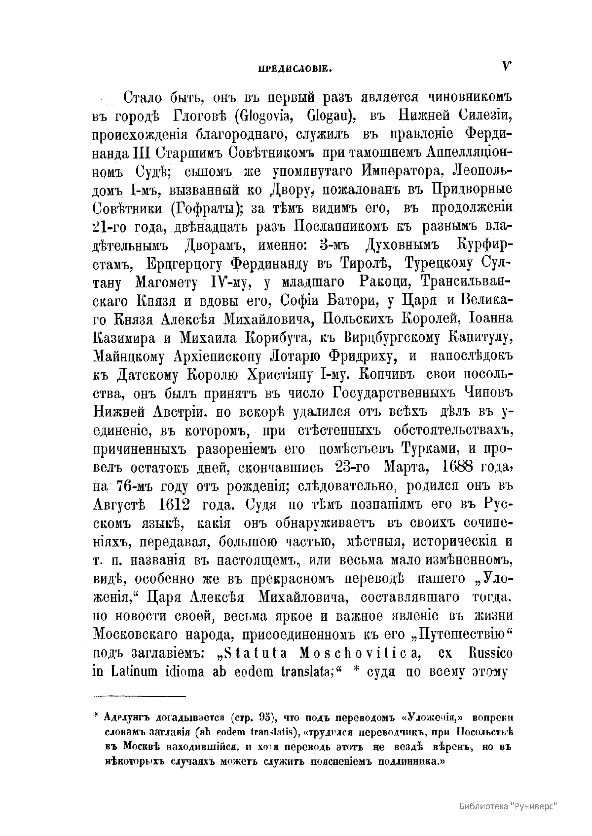 Путешествiе въ Московiю барона Августина Майерберга и Горацiя Вильгельма Кальвуччи, пословъ Августѣйшега Римскаго Императора Леопольда къ Царю и Великому Князю Алексѣю Михайловичу въ 1661 году, описанное самимъ барономъ Майербергомъ