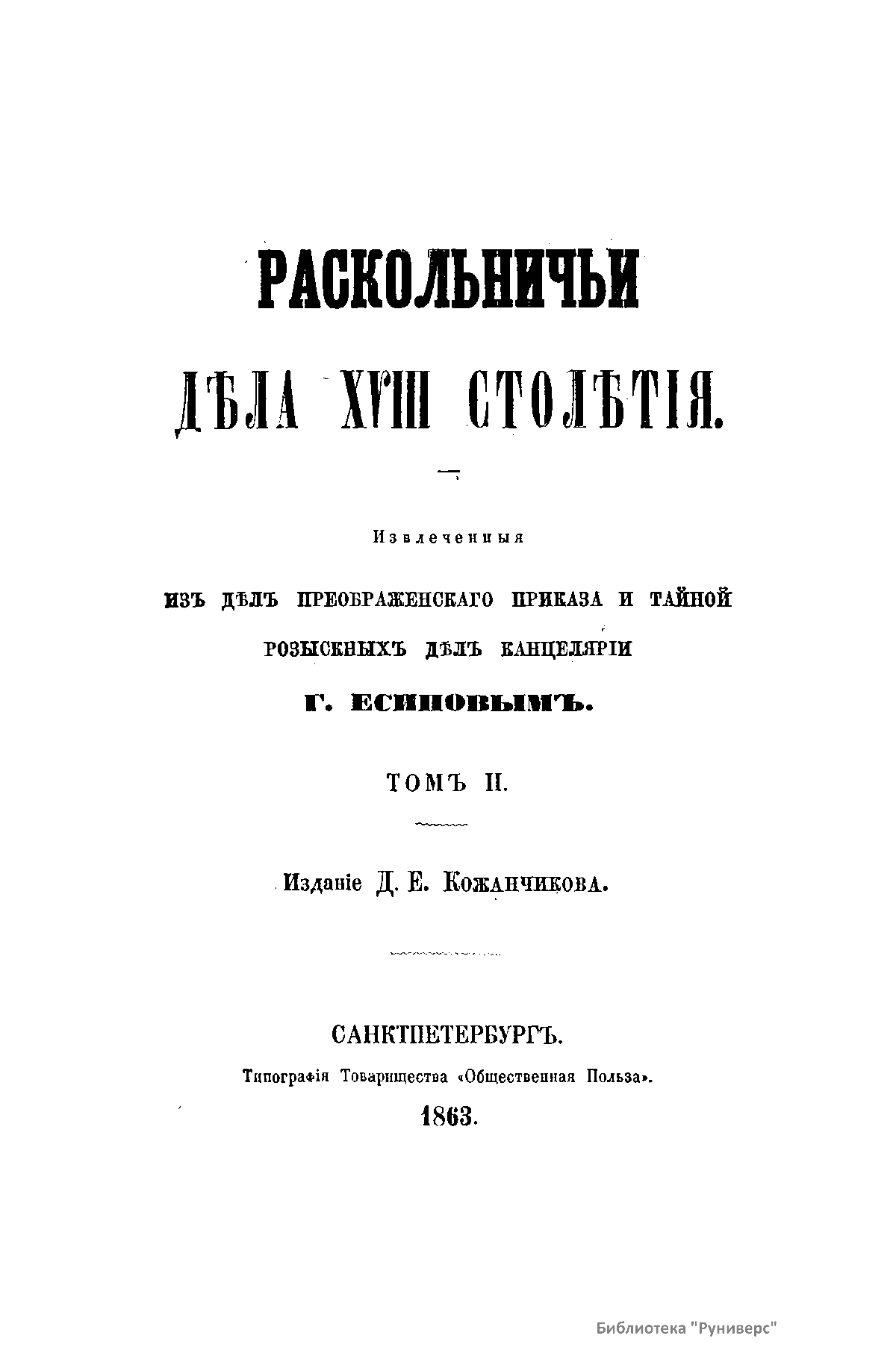 Раскольничьи дѣла XVIII столѣтiя. Томъ II