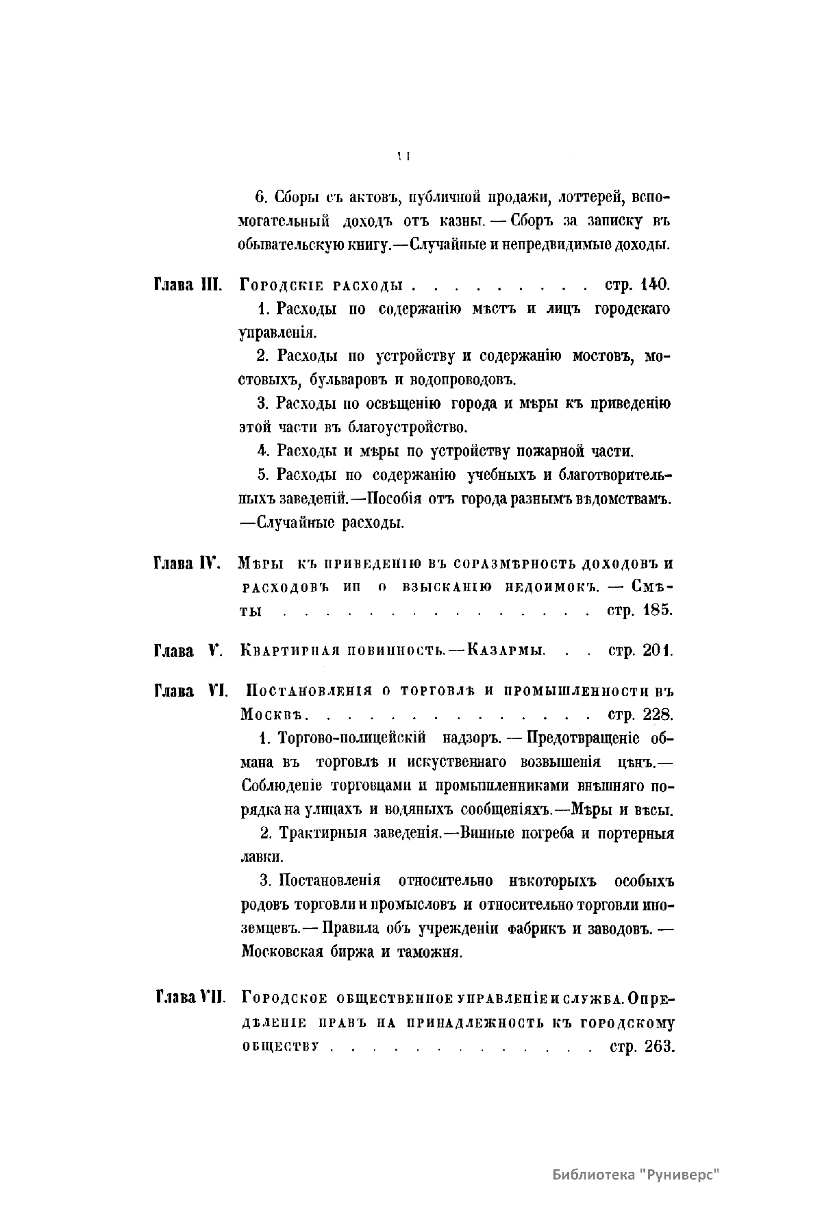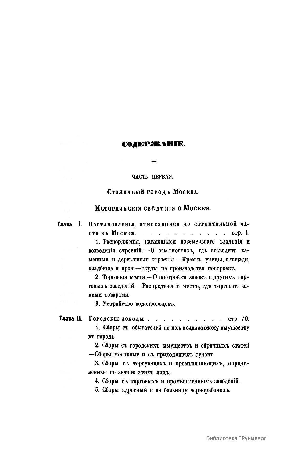 Издание заключает в себе все существующие городские поселения Российской империи, расположенные в алфавитном порядке губерний. По каждому городскому поселению указаны постановления, изданные в законодательном порядке по 1 января 1860 года. Они дают представление о значении каждого поселения в административном отношении, строительной части, городских доходах и расходах, повинностях, льготах, местных сословных правах обывателей и управления. Кроме того, по каждому городу помещаются сведения за 1858 год о населении, заимствованные из Центрального Статистического Комитета Министерства Внутренних Дел, и о количестве городских доходов и расходов, извлеченных из отчетов Городских Дум и Ратуш. Проведена обширная работа по подготовке издания. В течение нескольких лет было собрано большое количество информации для составления полного списка городских поселений. Историко-статистическое обозрение составляет восемь томов, каждый из которых посвящен отдельным губерниям. Во второй части пятого тома находится Алфавитный указатель всех имеющихся в сборнике городов с указанием томов. Шестой том посвящен Москве и городам и посадам московской губернии, а седьмой Санкт-Петербургу и городам губернии.