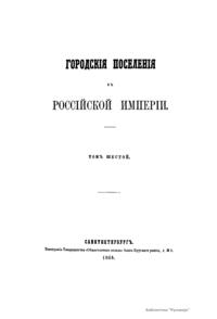 Городскiя поселенiя въ Россiйской имперiи. Томъ шестой