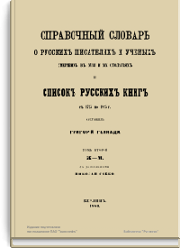Справочный словарь о русскихъ писателяхъ и ученыхъ, умершихъ въ XVIII и XIX столѣтiяхъ, и списокъ русскихъ книгъ съ 1725 по 1825 г. Томъ второй Ж-М