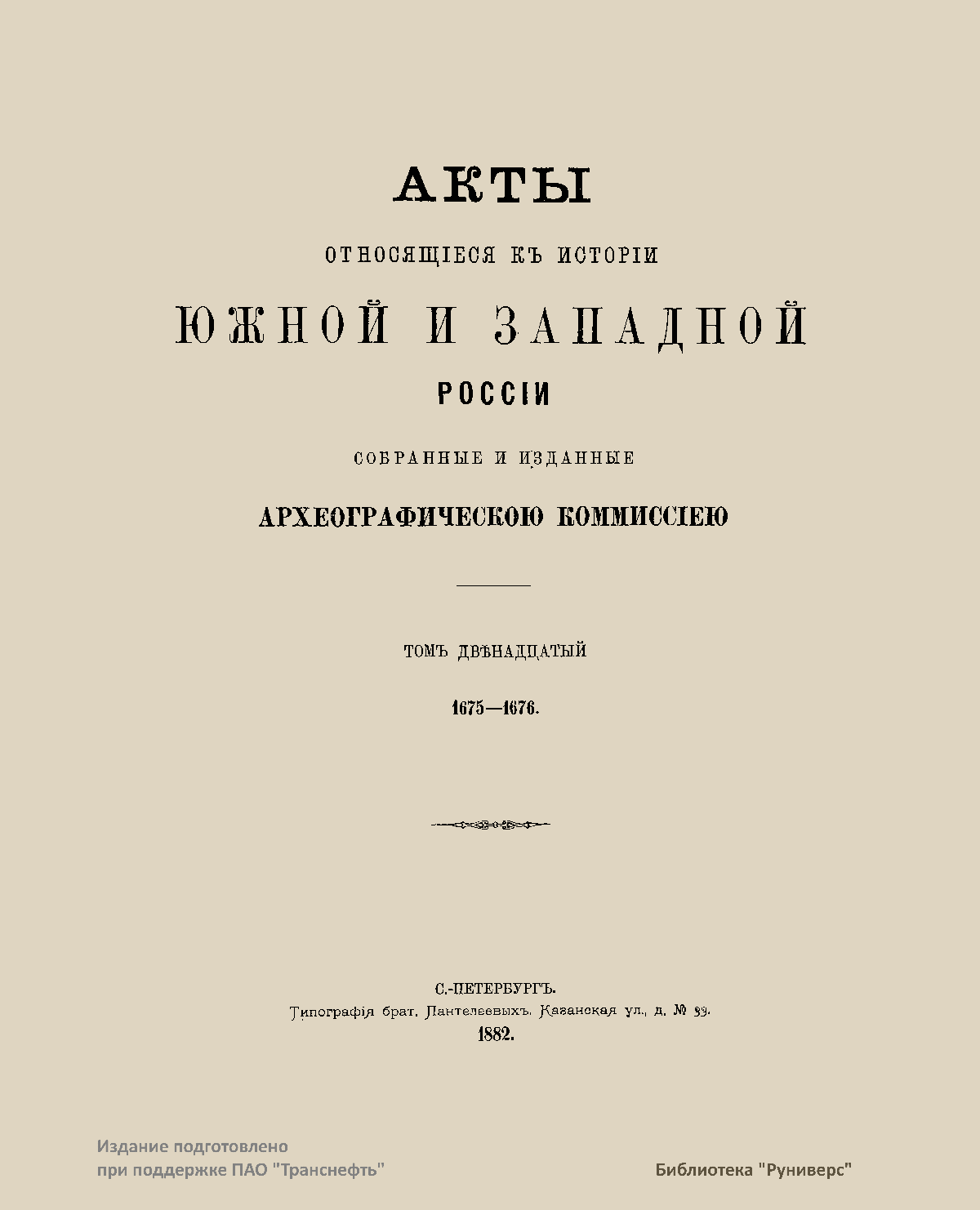Акты, относящiеся къ исторiи южной и западной Россiи. Томъ двѣнадцатый. 1675-1676