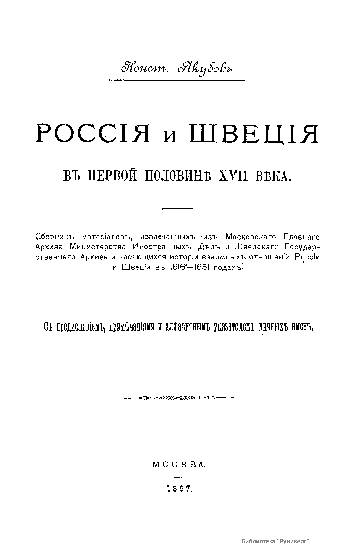 Россiя и Швецiя въ первой половинѣ XVII вѣка