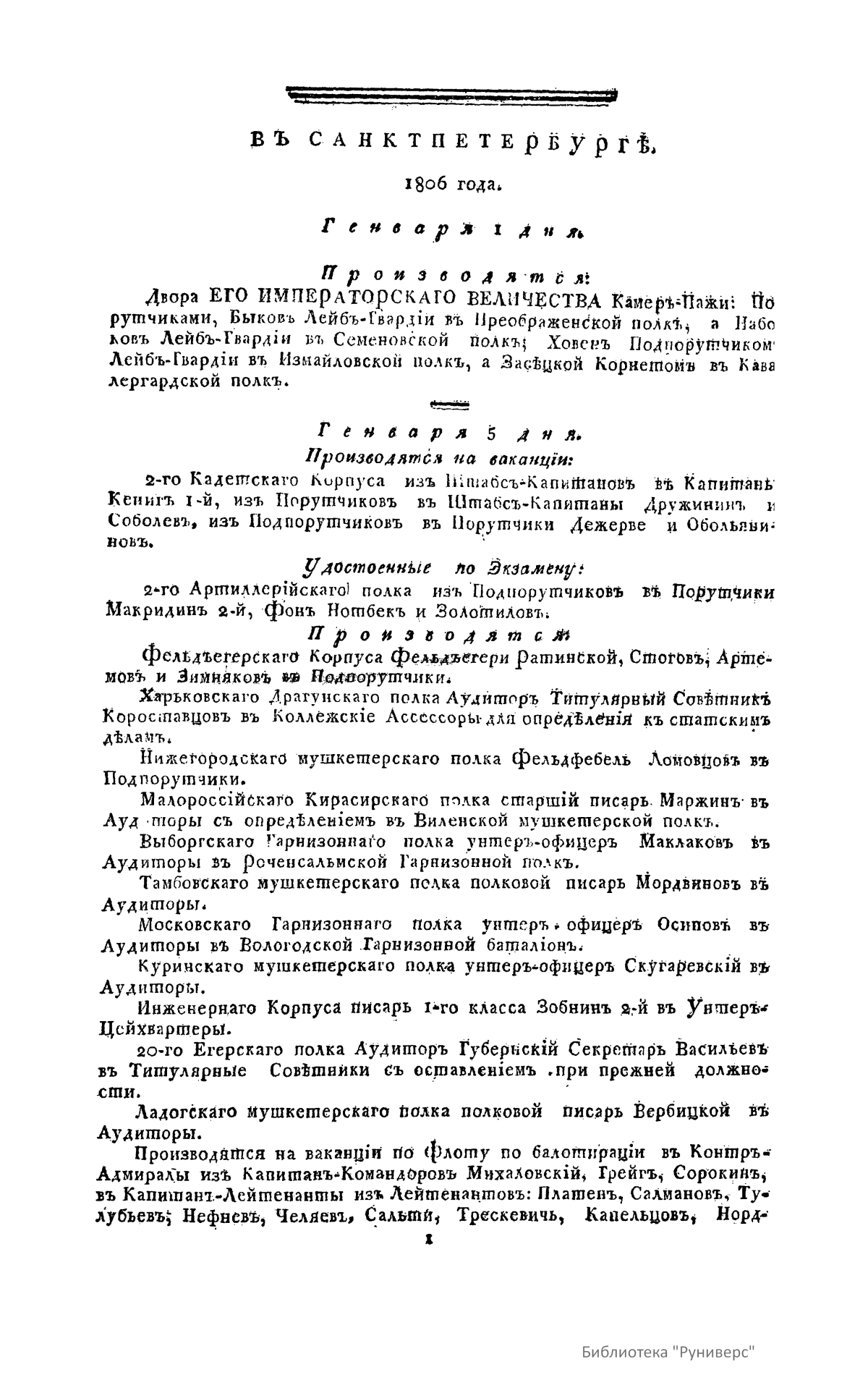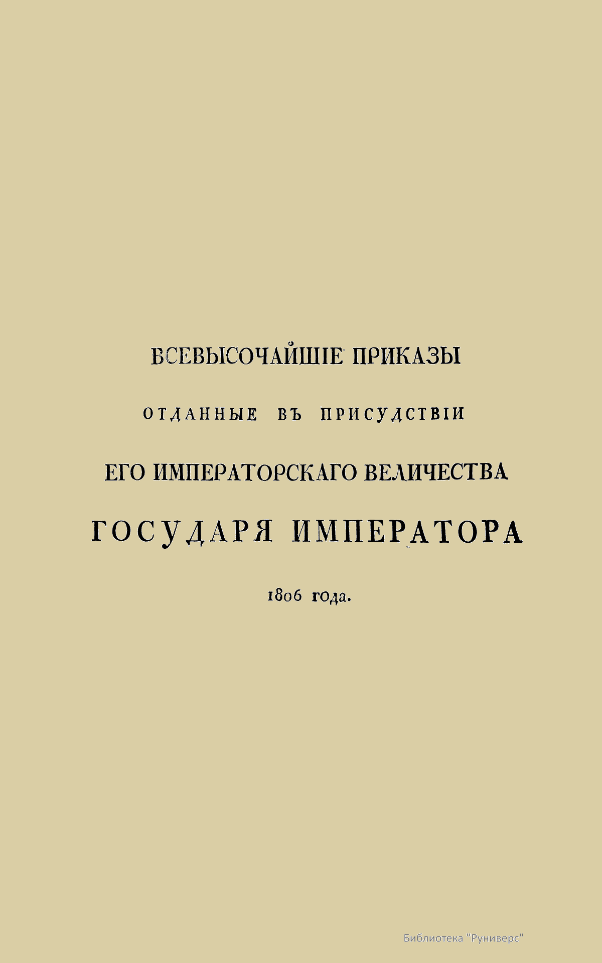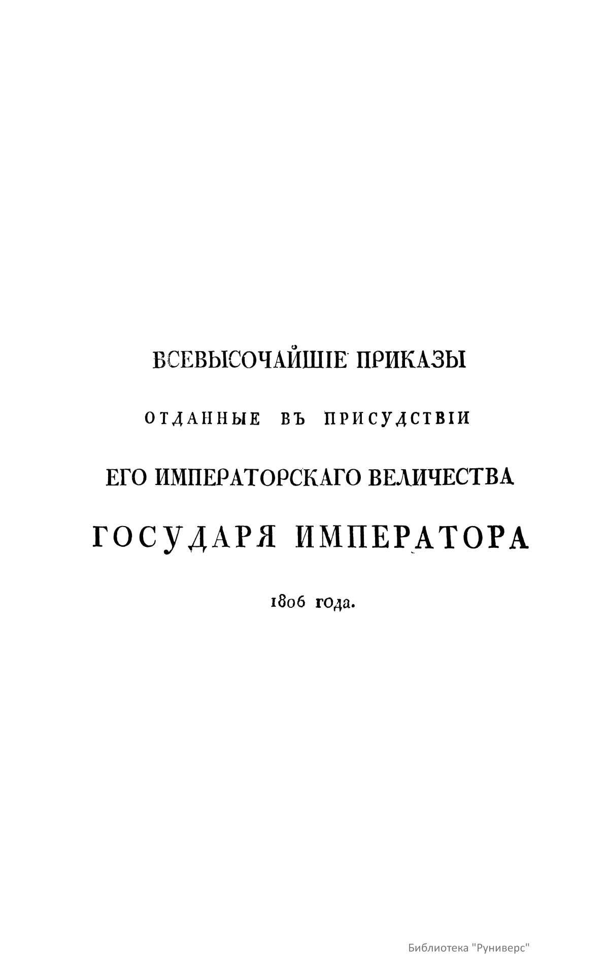Всевысочайшие приказы, отданные в присутствии Его Императорского Величества Государя Императора, со вступления его на Всероссийский престол. 1806
