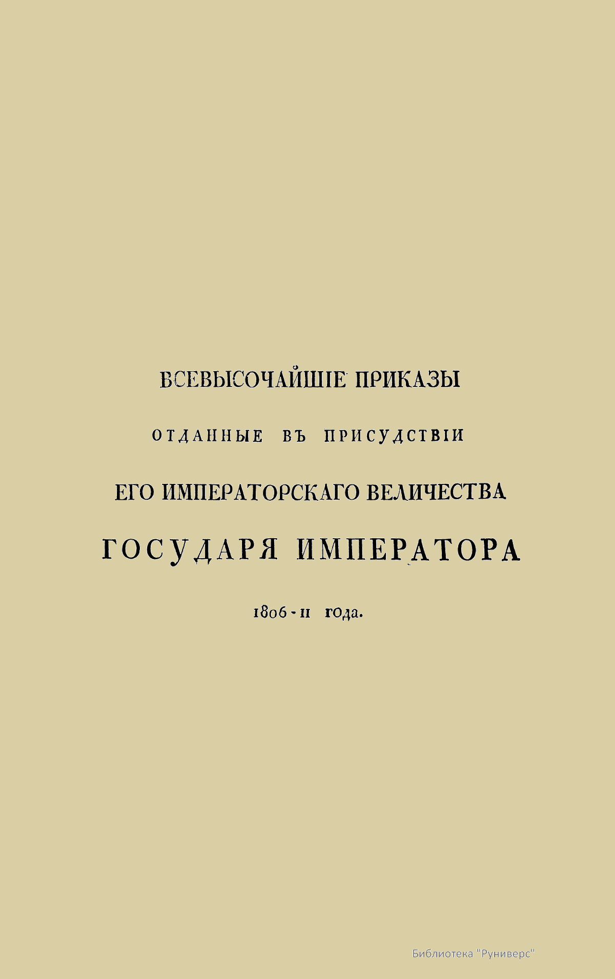 Всевысочайшие приказы, отданные в присутствии Его Императорского Величества Государя Императора, со вступления его на Всероссийкий престол. 1806/2
