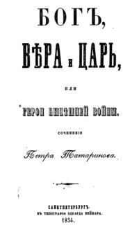 Издание содержит сочинения Петра Татаринова, посвященные Крымской войне (1853-1856). В них содержатся рассуждения о славе и величии России, описания битв, прославление подвигов русской армии, анекдоты, письма с мест военных действий.