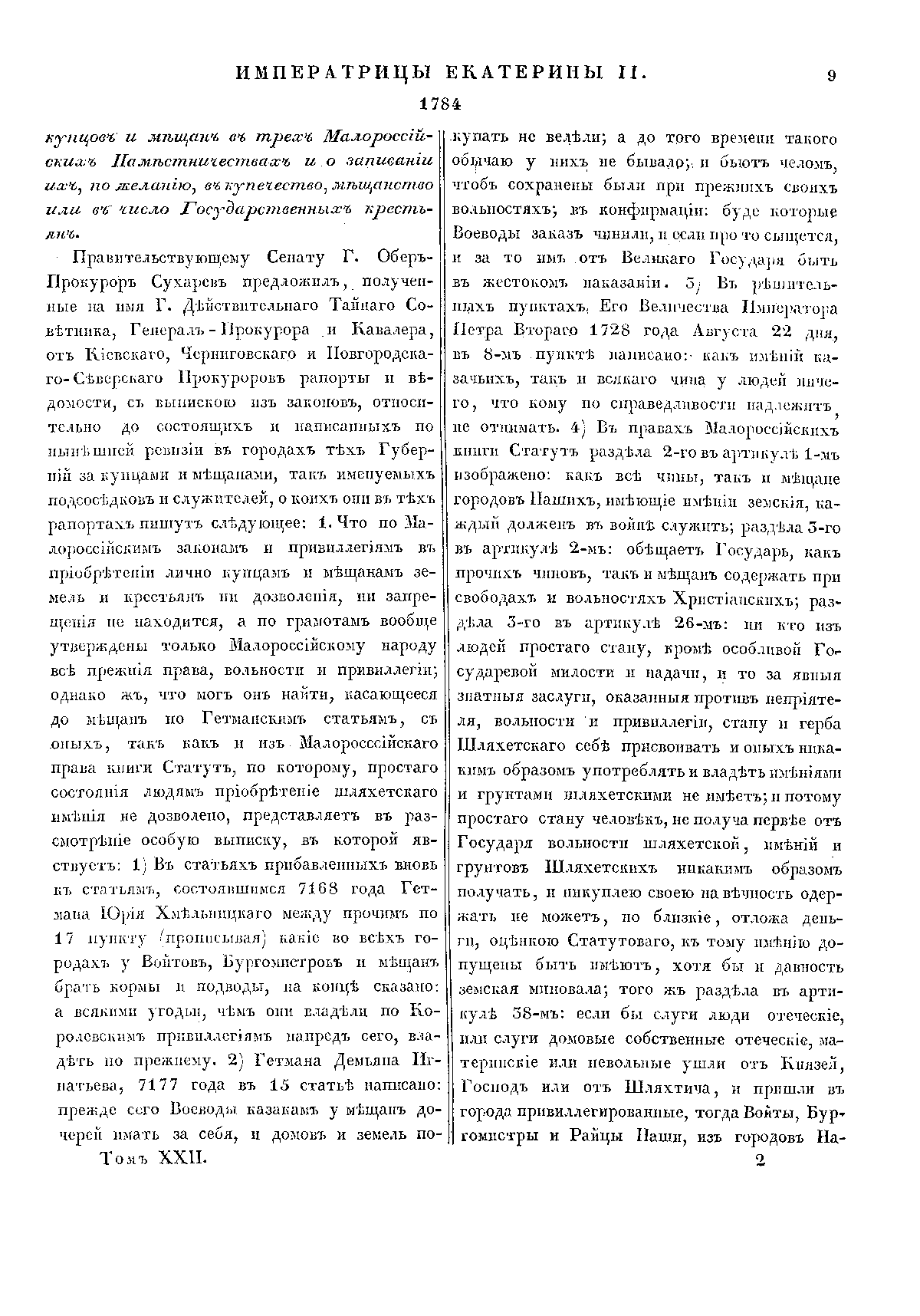 Полное собрание законов Российской Империи. Собрание Первое. Том XXII