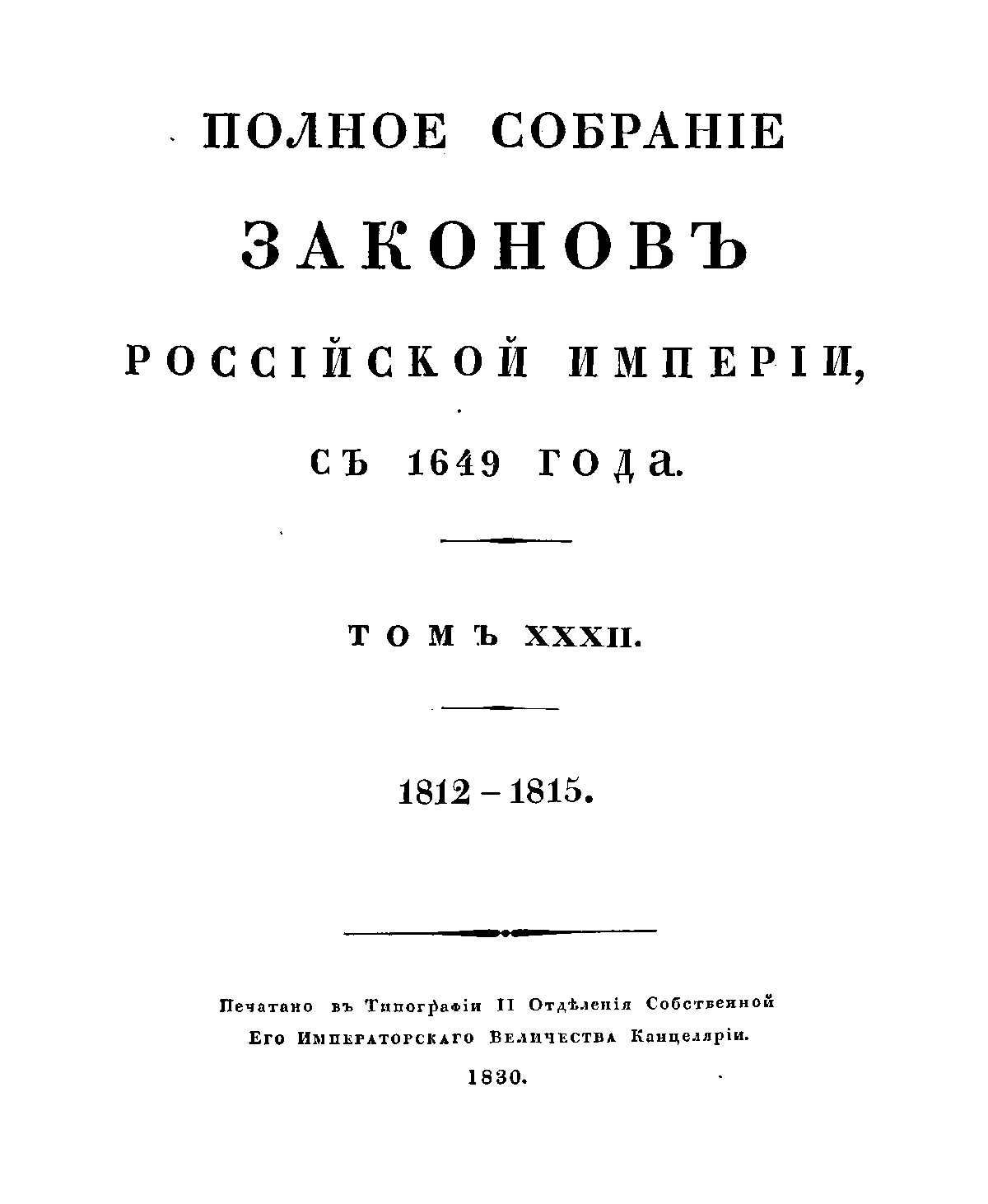 Полное собрание законов Российской Империи. Собрание Первое. Том XXXII