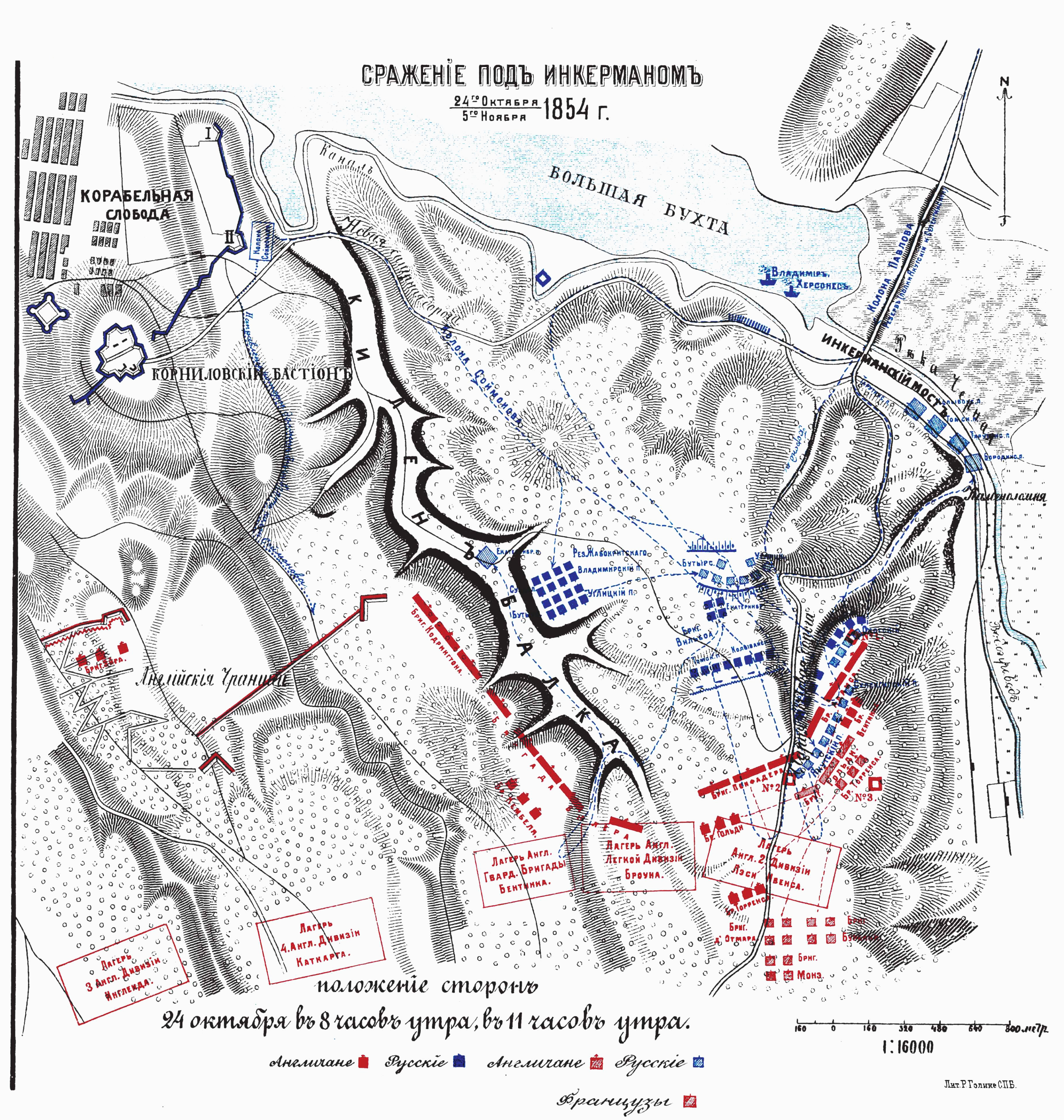 Сражение под Инкерманом 24 Октября/5Ноября 1854 года. Положение сторов 24 октября в 8 часов утра, в 11 утра