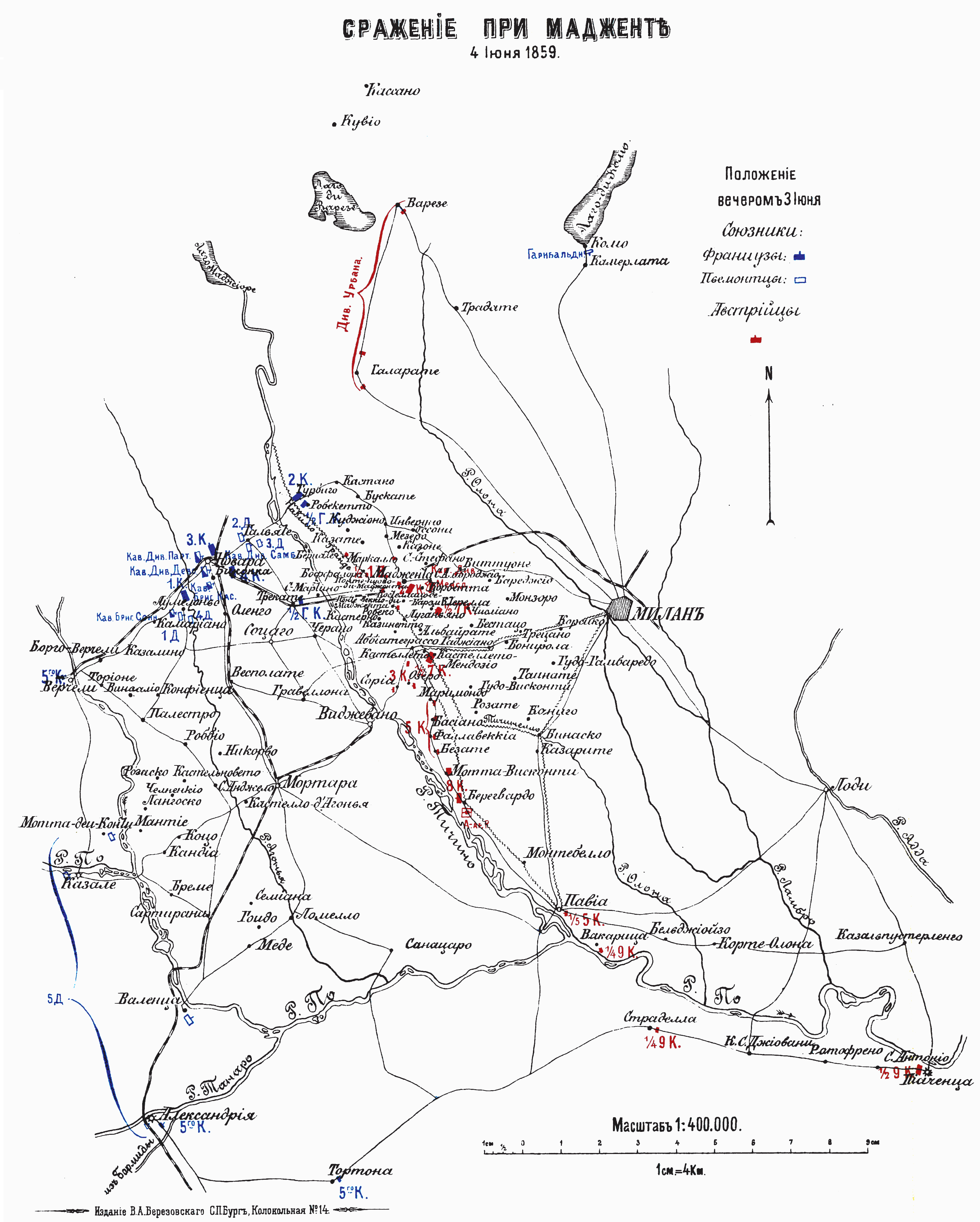 Сражение при Мандженте 4 июня 1859. Положение вечером 3 июня