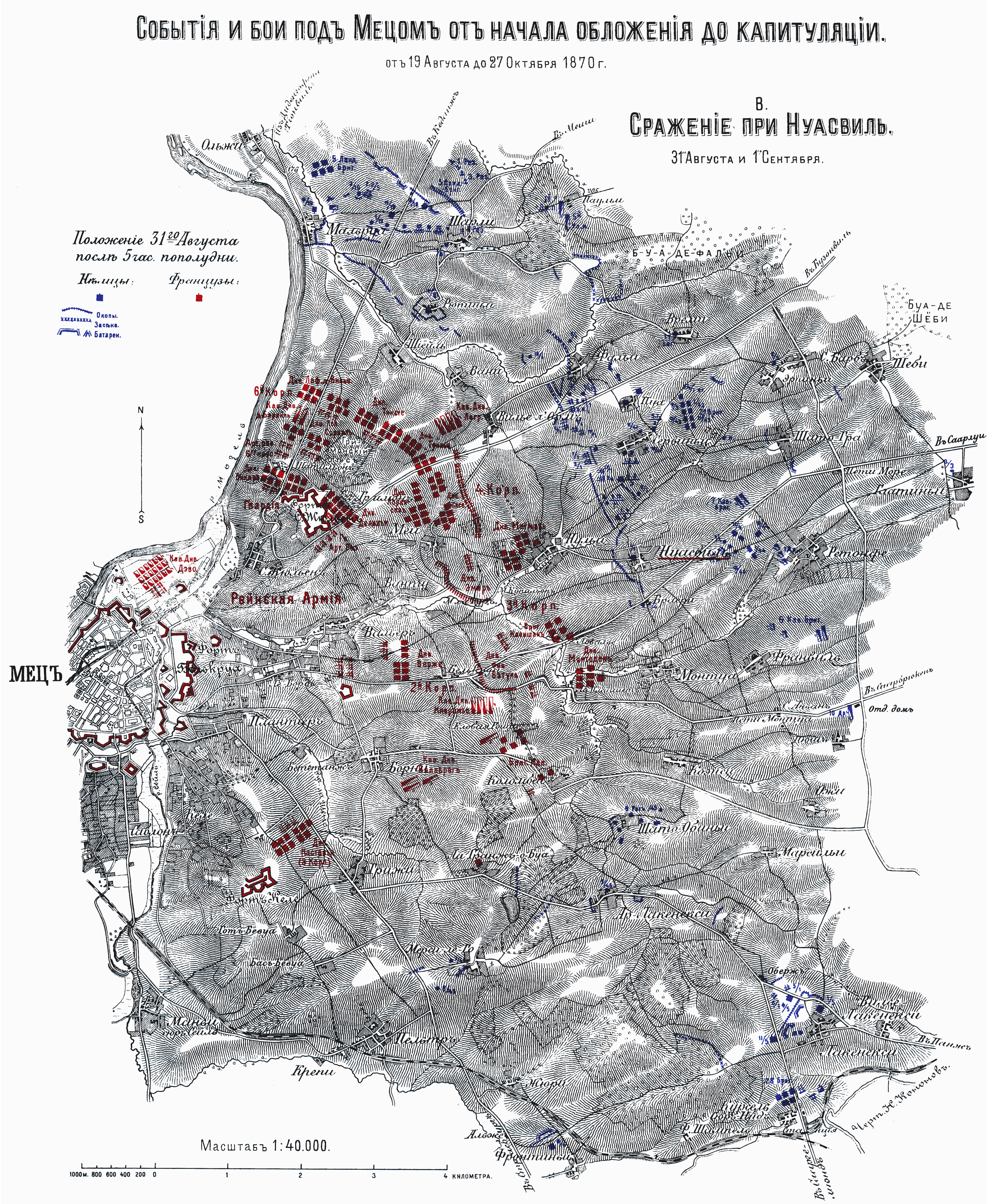 События и бои под Мецем от начала обложения до капитуляции. От 19 Августа до 27 Октября 1870. B. Сражение при Нуасвиль. 31 августа и 1 сентября. Положение 31-го августа после 5 час. Пополудни