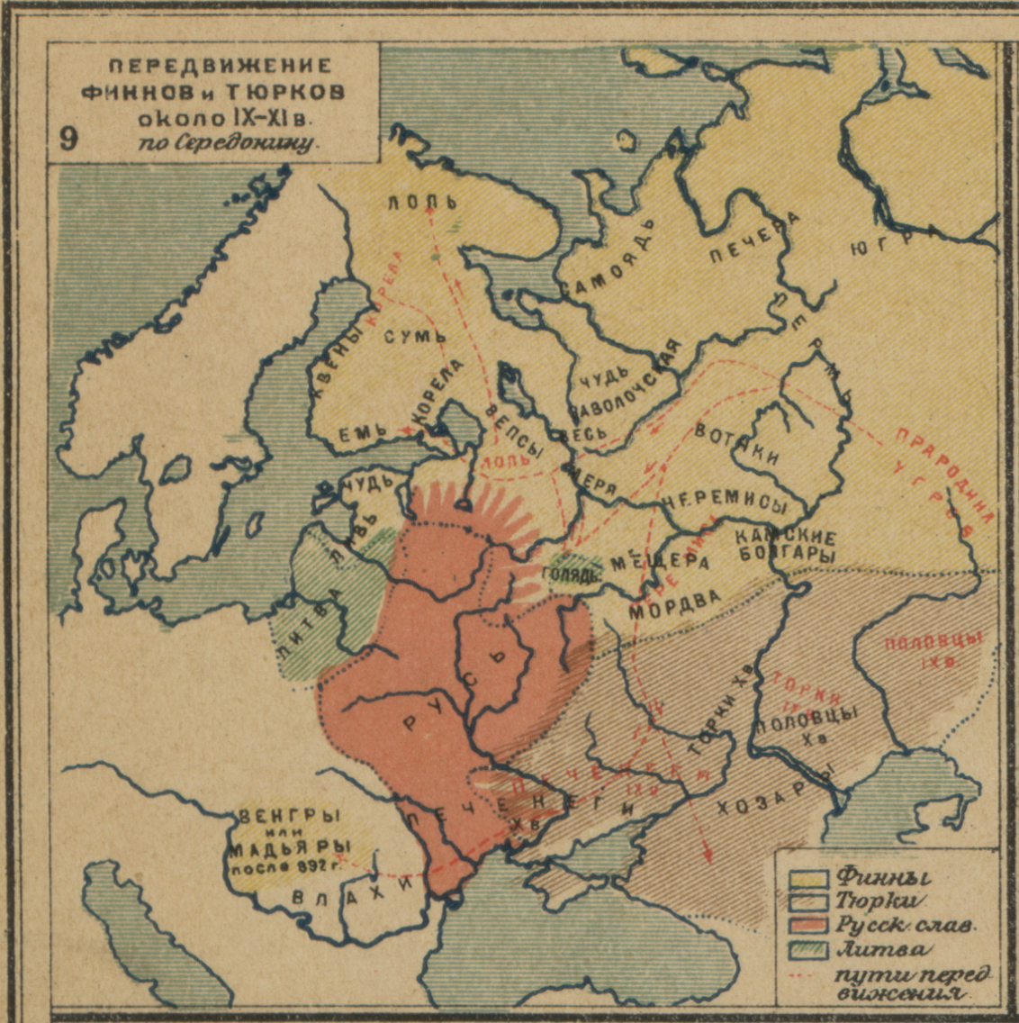 Передвижение Финнов и Тюрков около IX-XI века по Середонину