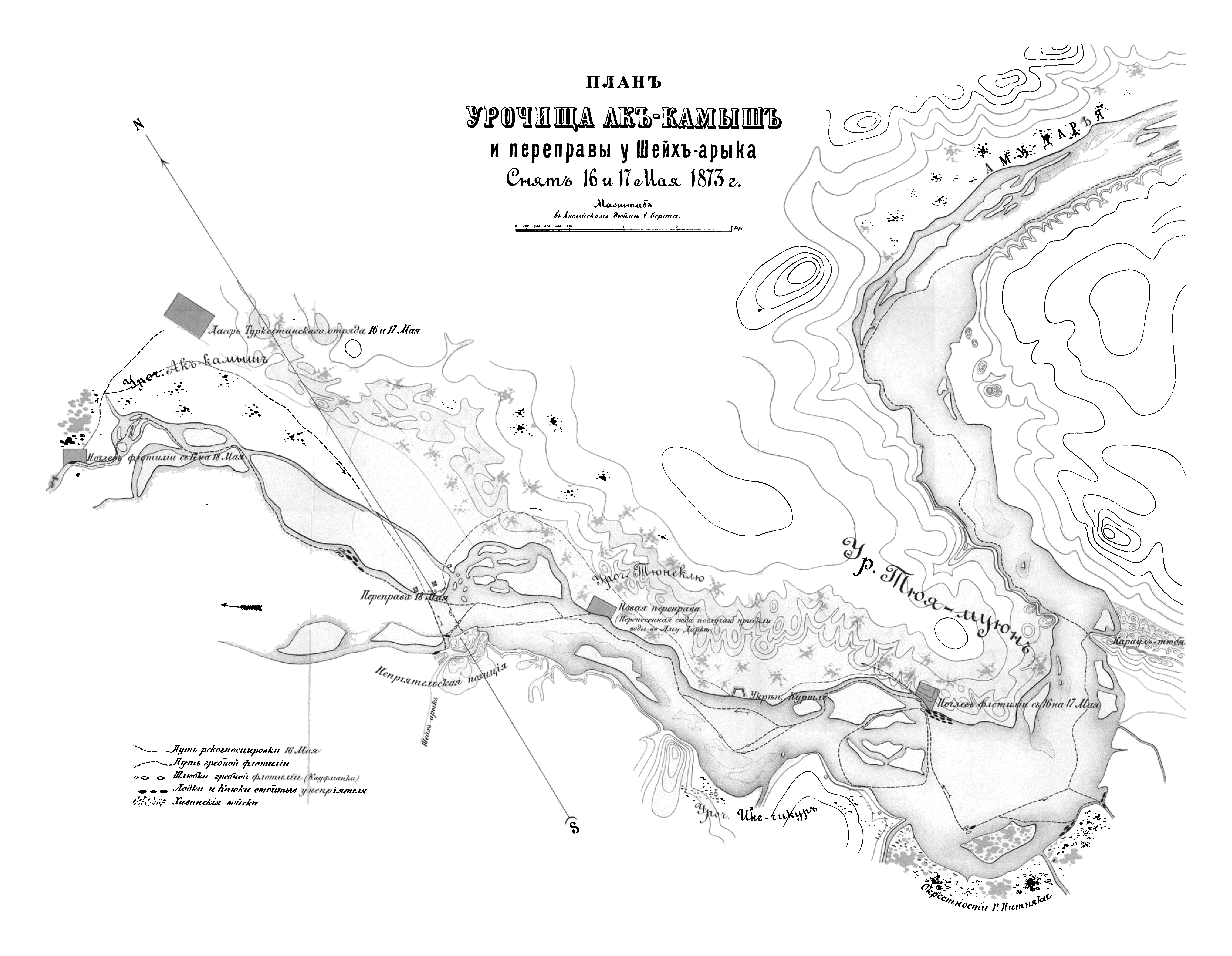 Урочище Ак-Камыш и переправа у Шейх-арыка. Снято 16 и 17 мая 1873 года