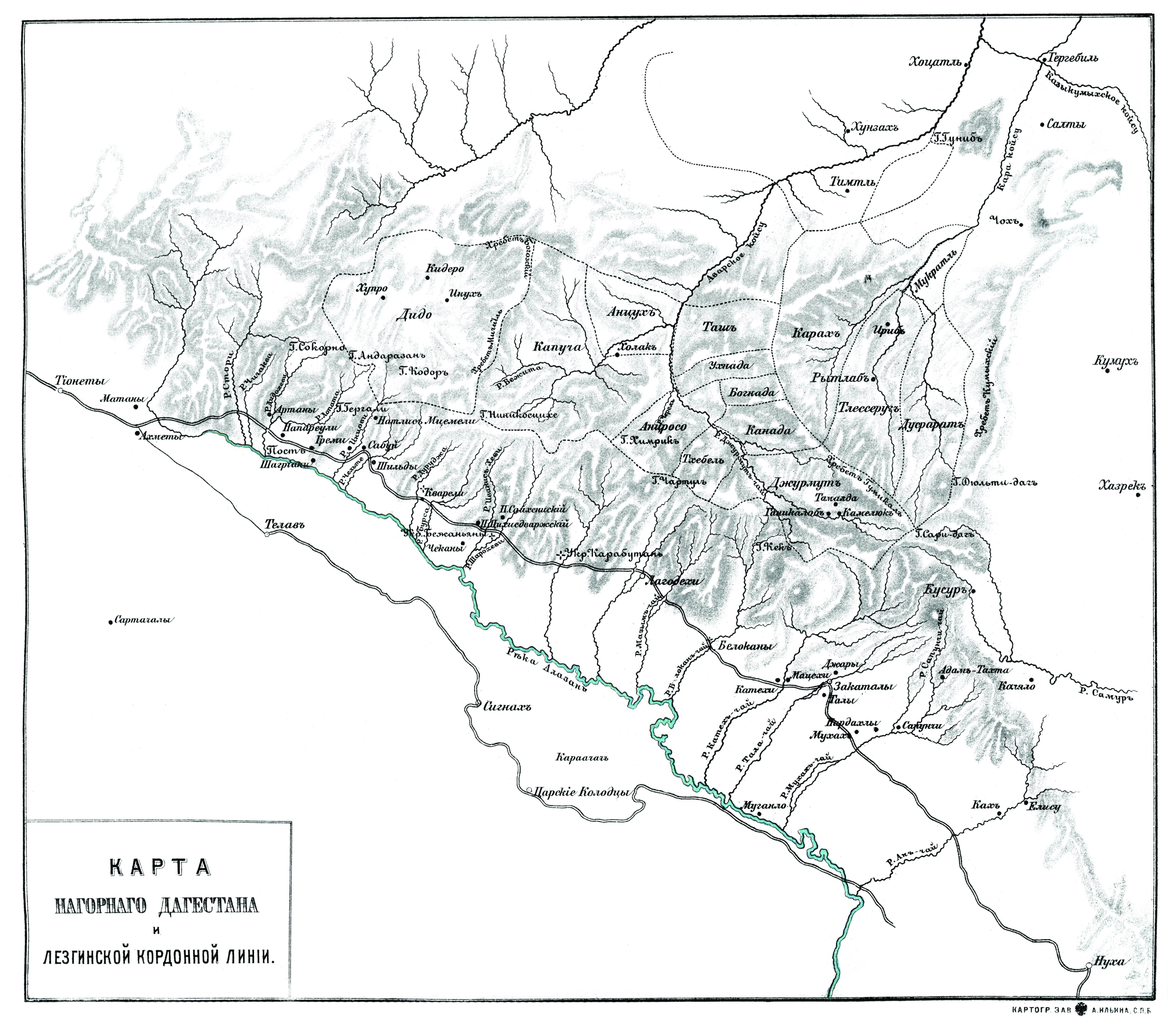 Карта Нагорного Дагестана и Лезгинской кордонной линии