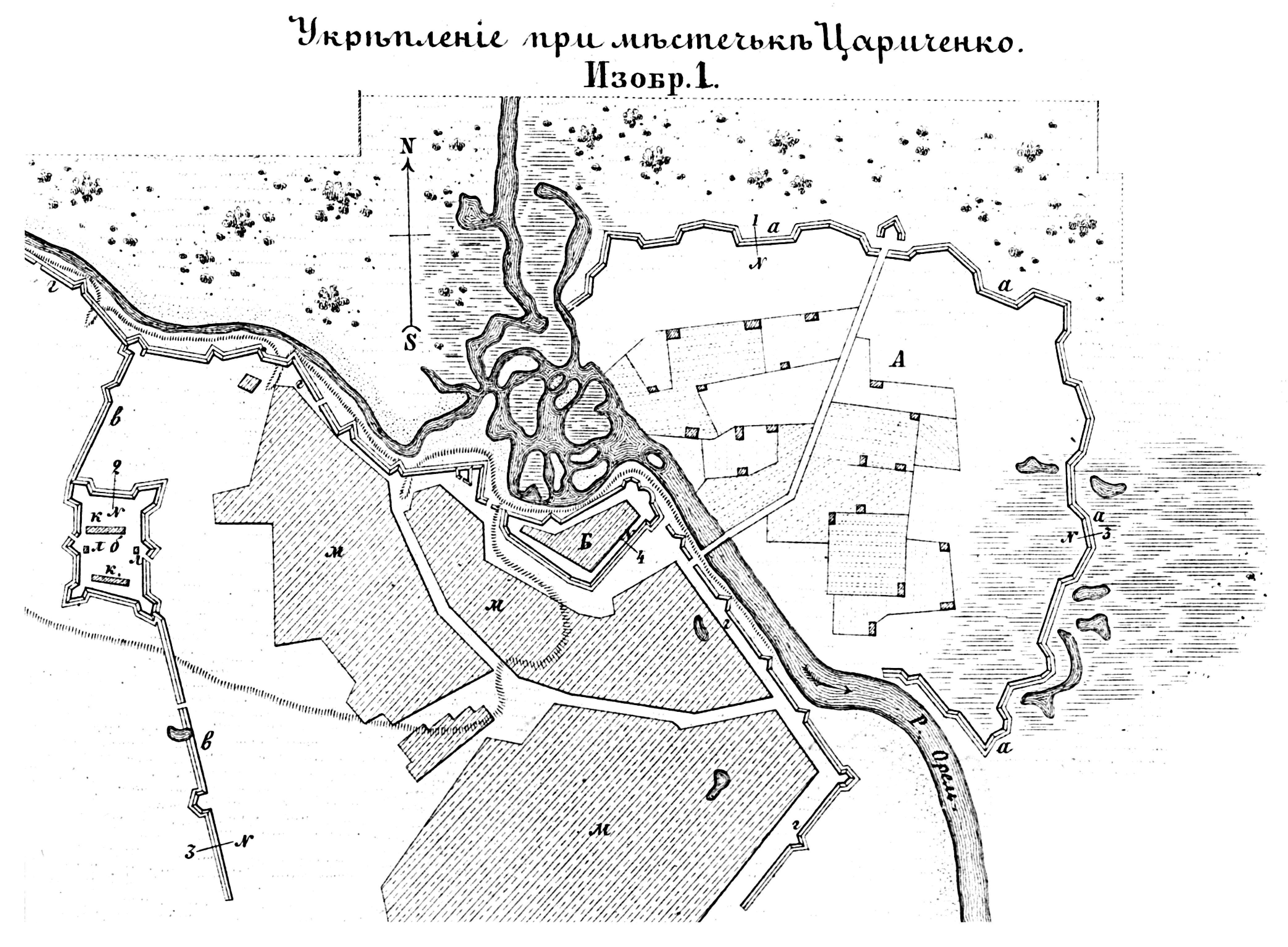 Полевые и временные укрепления. Изобр.1. Укрепление при местечке Цариченко