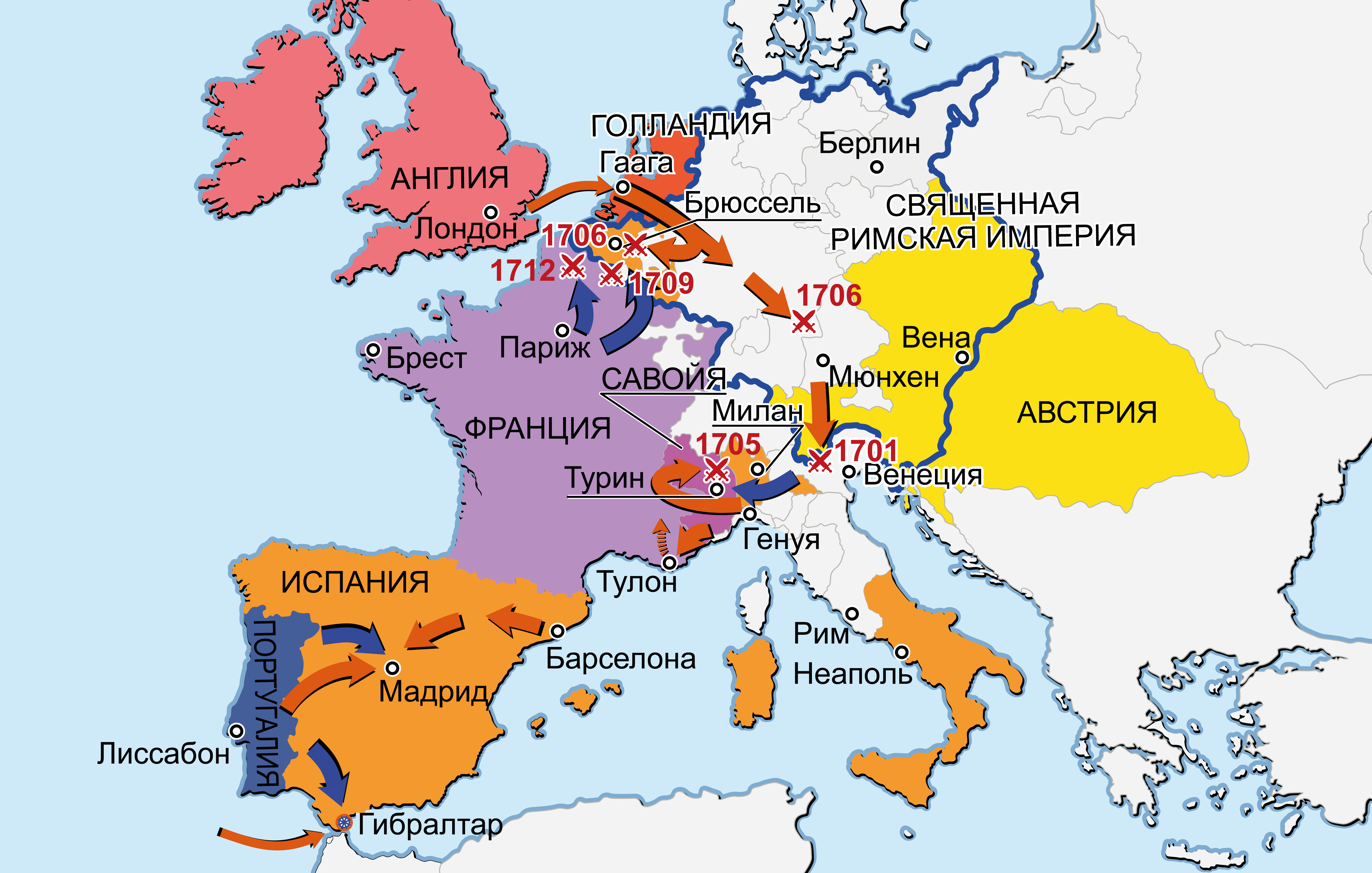 Полки Англии, Испании, Франции, Швеции, Австрии, Баварии, Саксонии, Пруссии