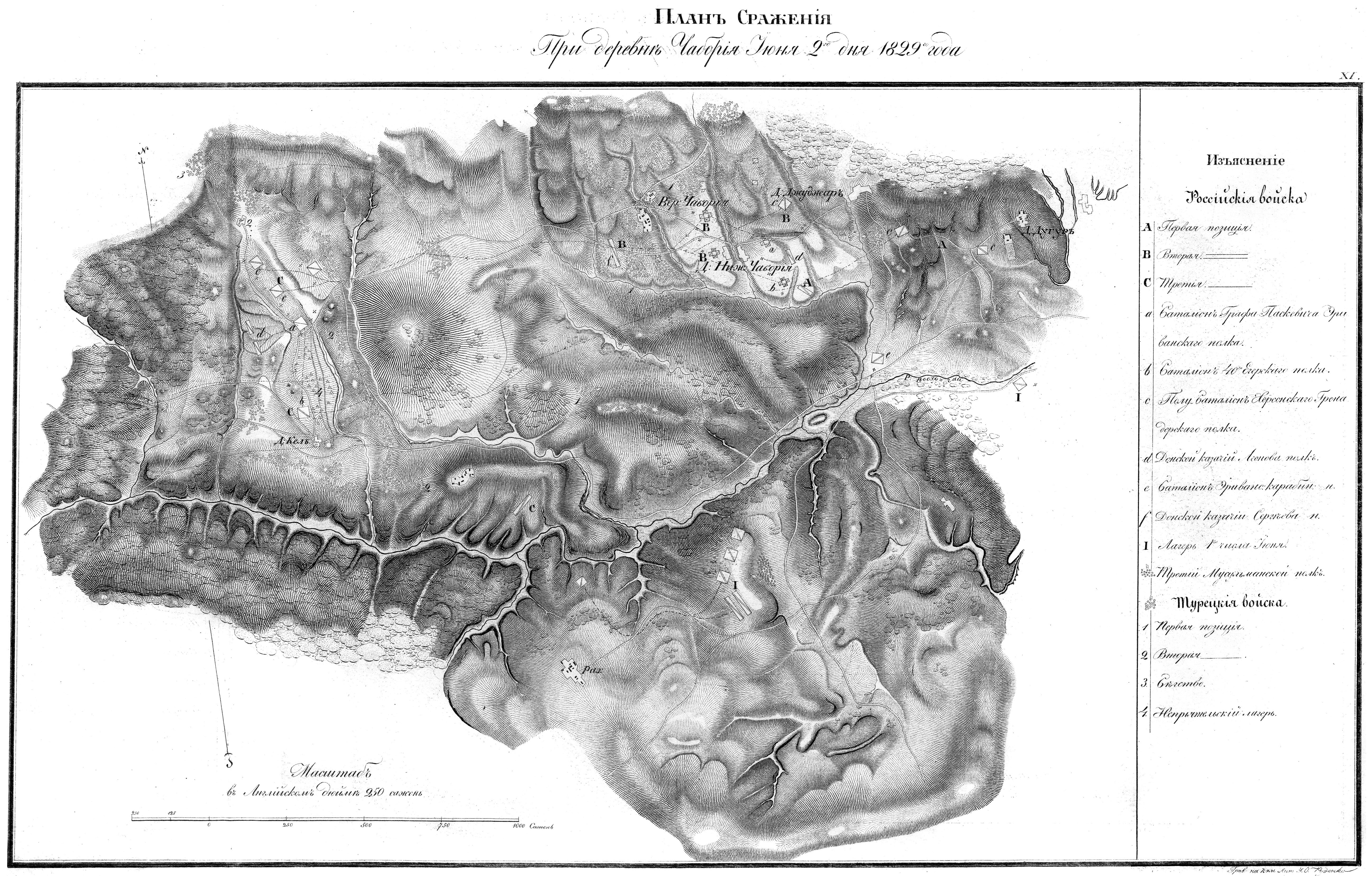Карта: Сражение при деревне Чабория 2 июня 1829 года.