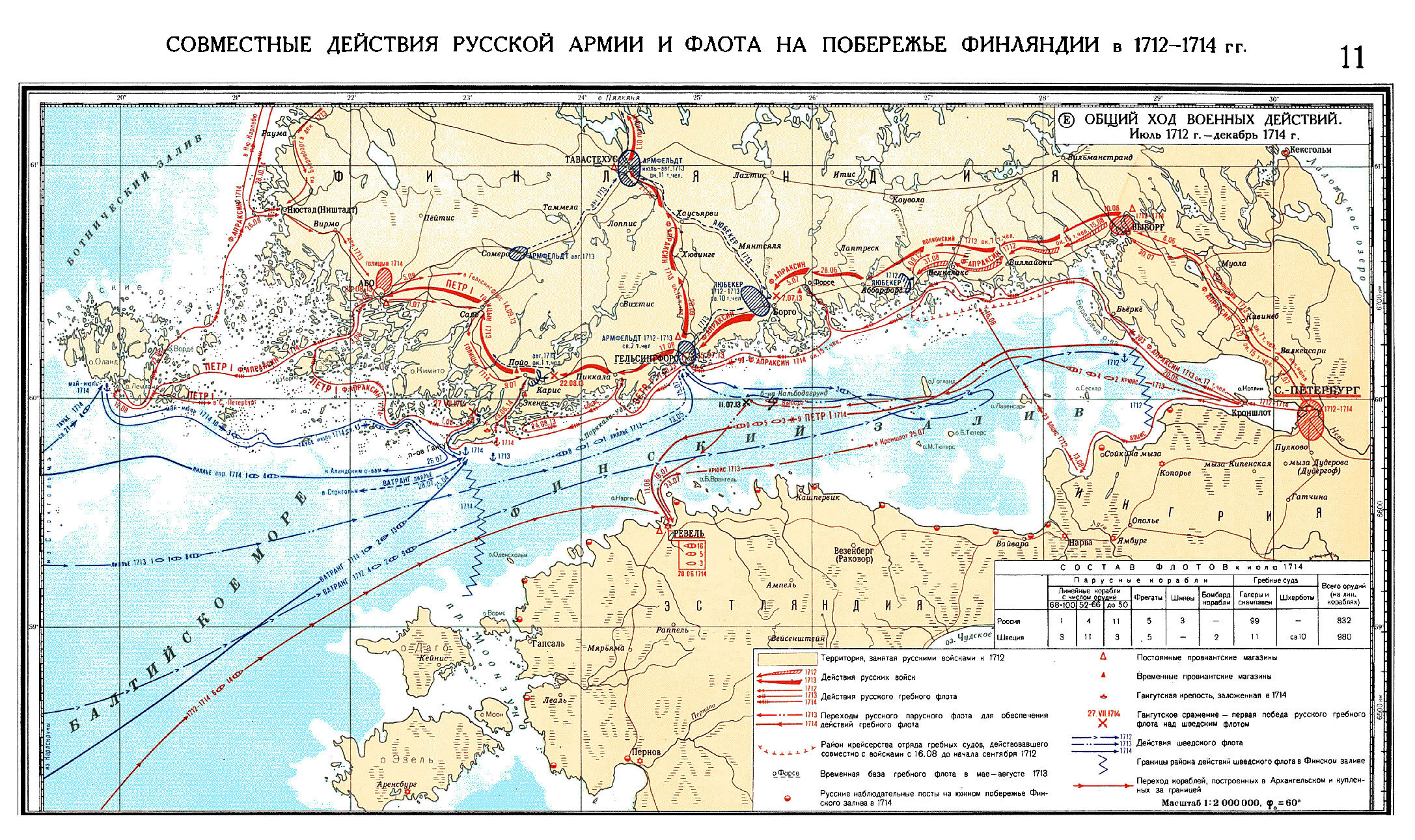 Карта: Совместные действия русской армии и флота на побережье Финляндии в 1712 — 1714 гг.