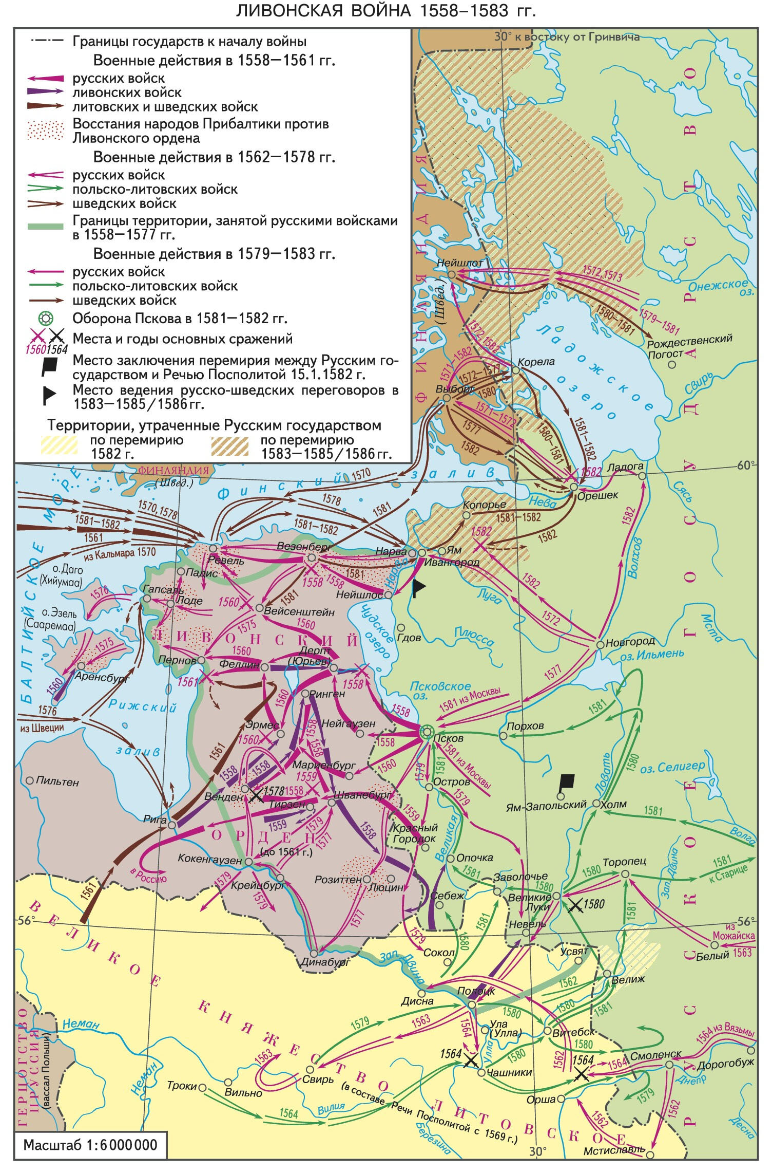 Карта: Ливонская война 1558 – 1583