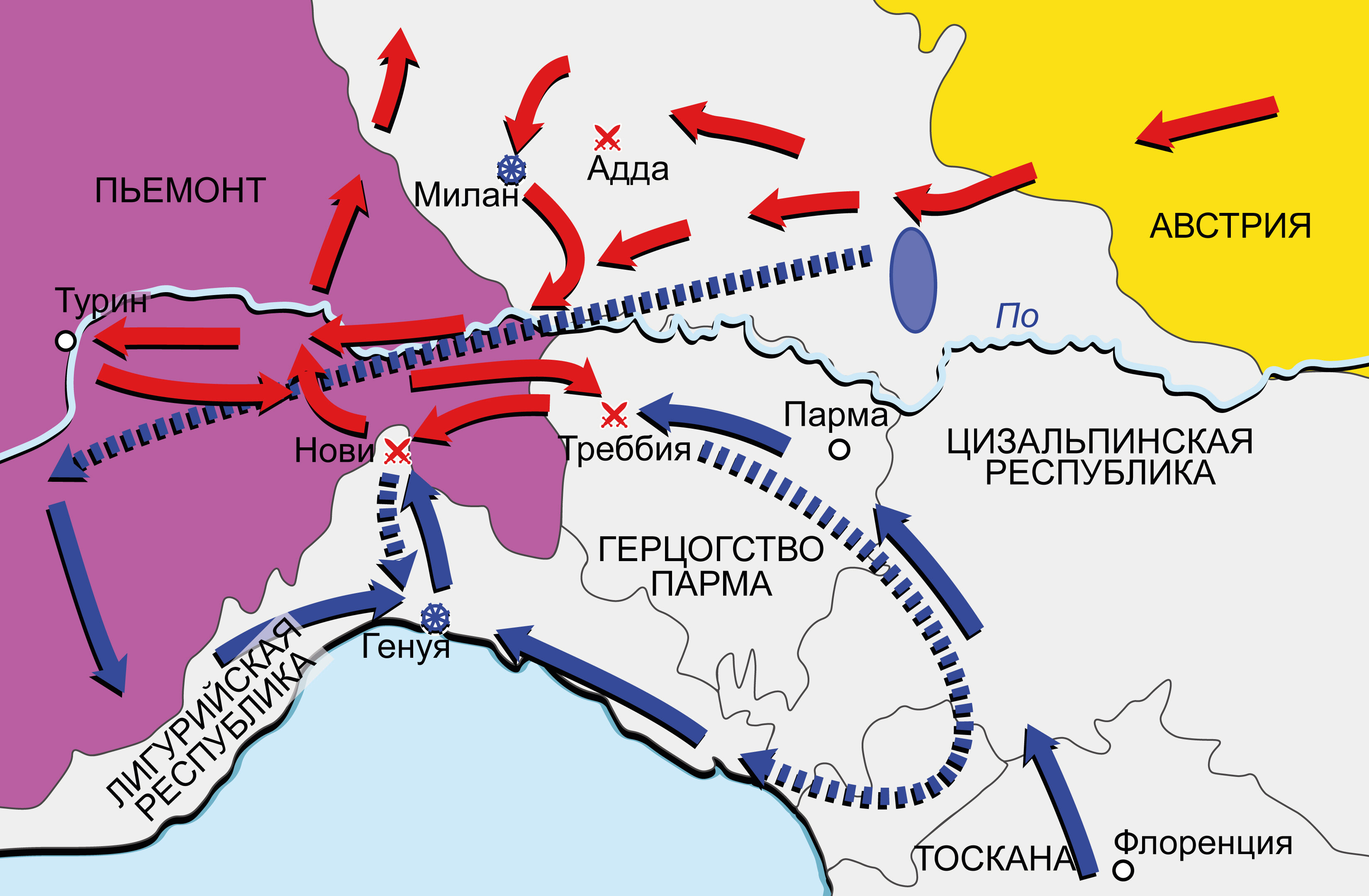 Вторая антифранцузская коалиция 1798–1802 гг. Карта кампании в Италии в 1799 г.