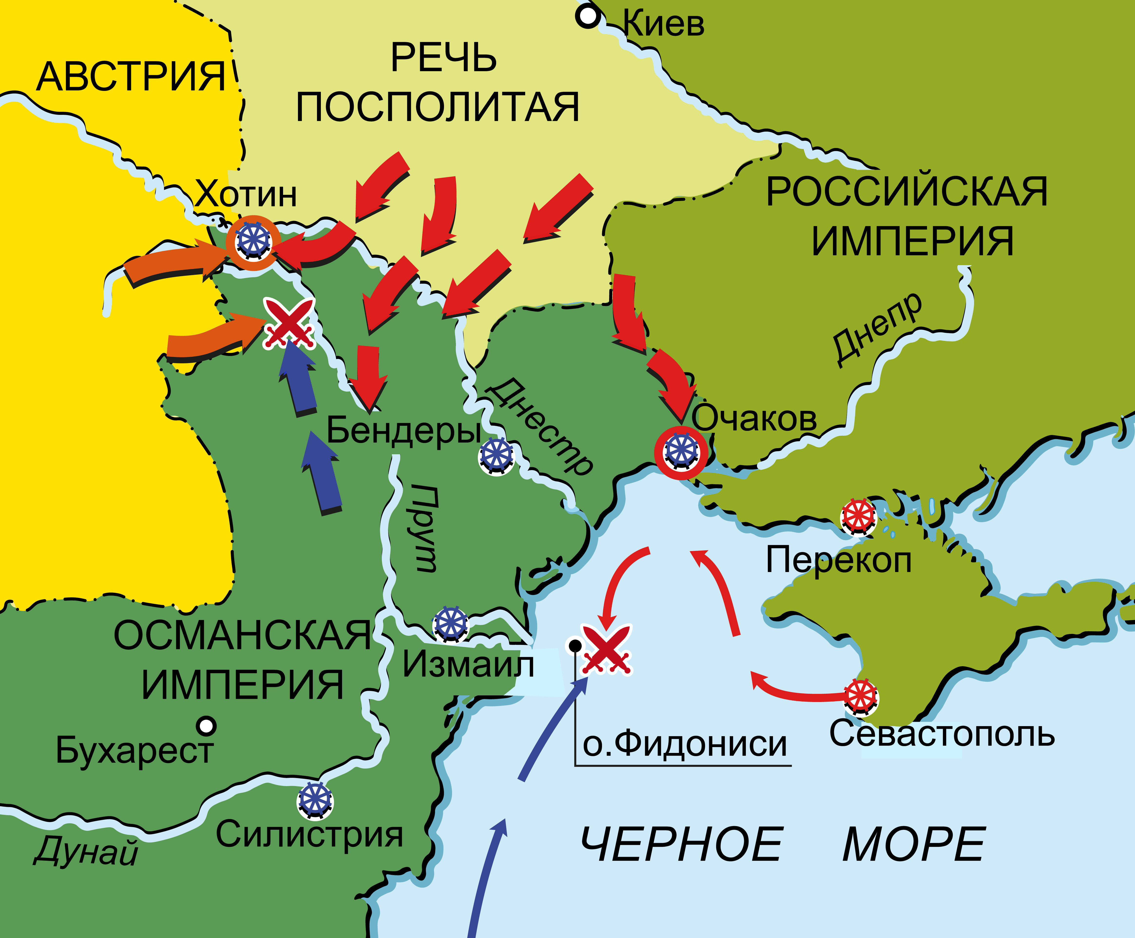 Война России и Австрии против Турции 1787–1791 гг. Карта кампании 1788 г. на Дунае и Черном море