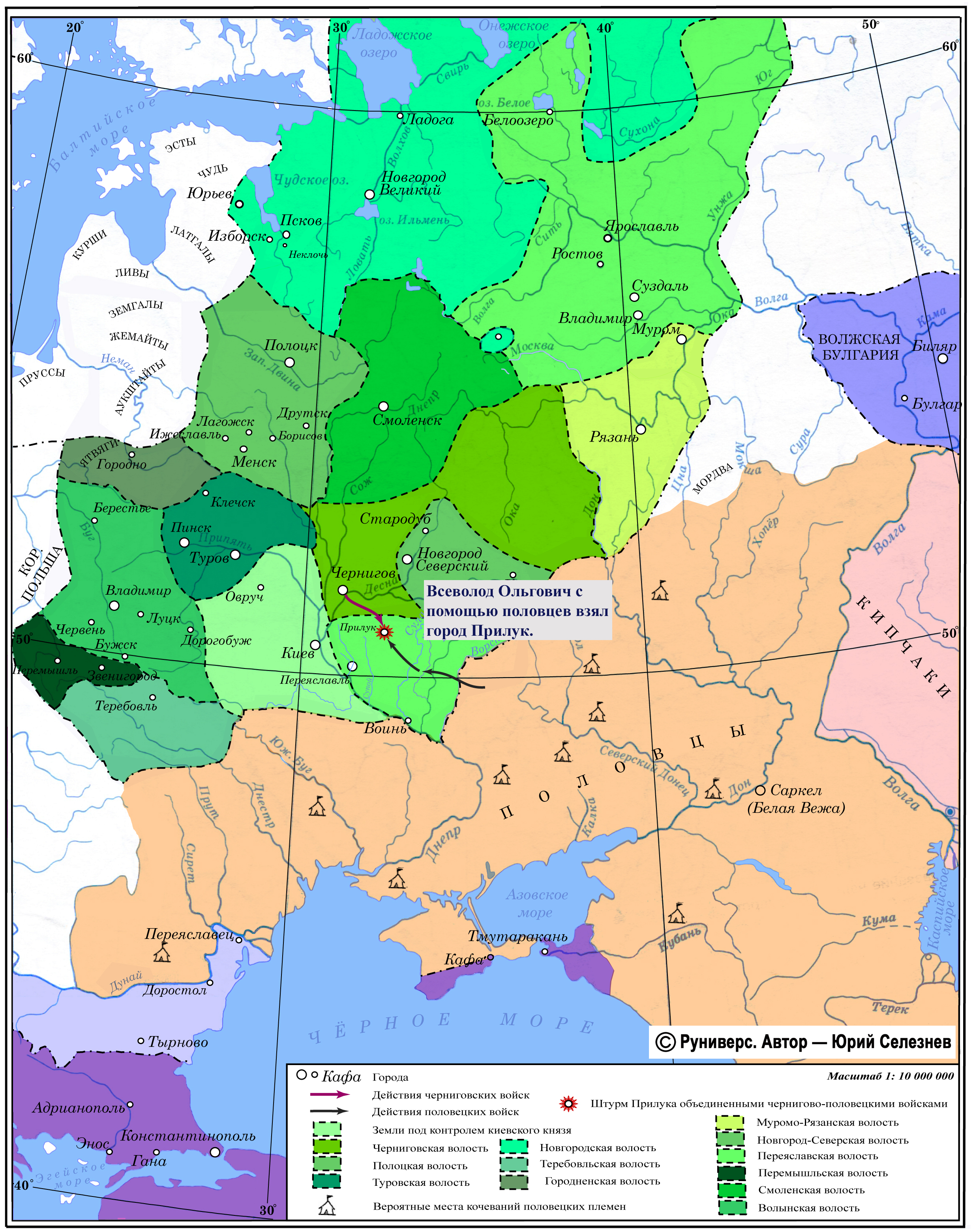 Всеволод Ольгович с помощью половцев взял город Прилук.