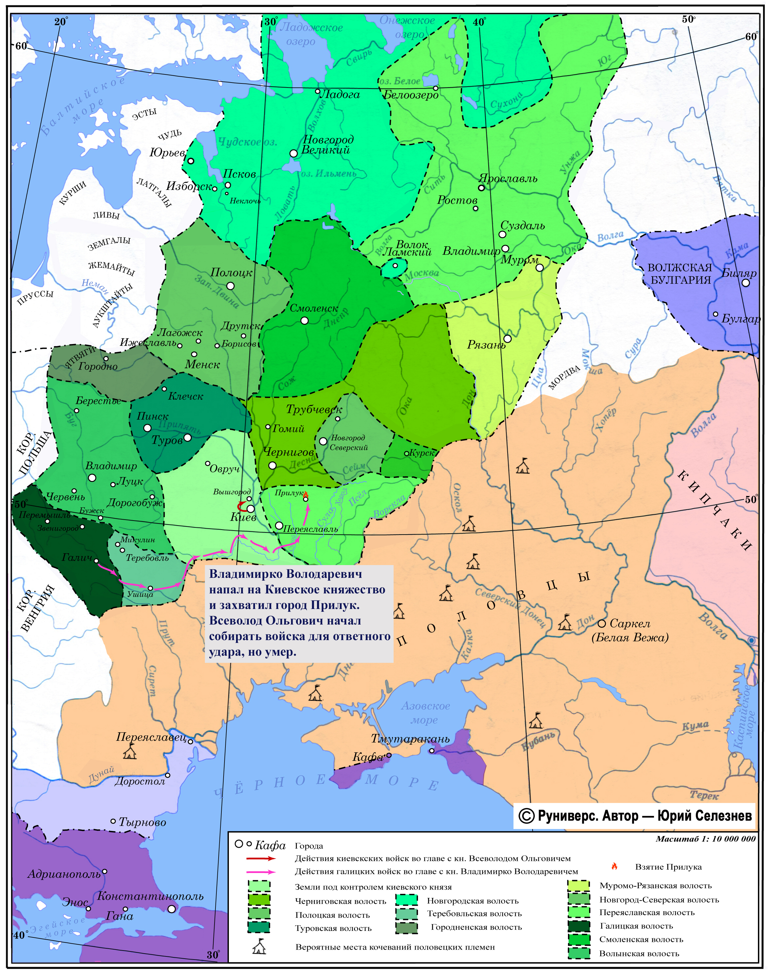 Владимирко Володаревич напал на Киевское княжество и захватил город Прилук. Всеволод Ольгович начал собирать войска для ответного удара, но умер.