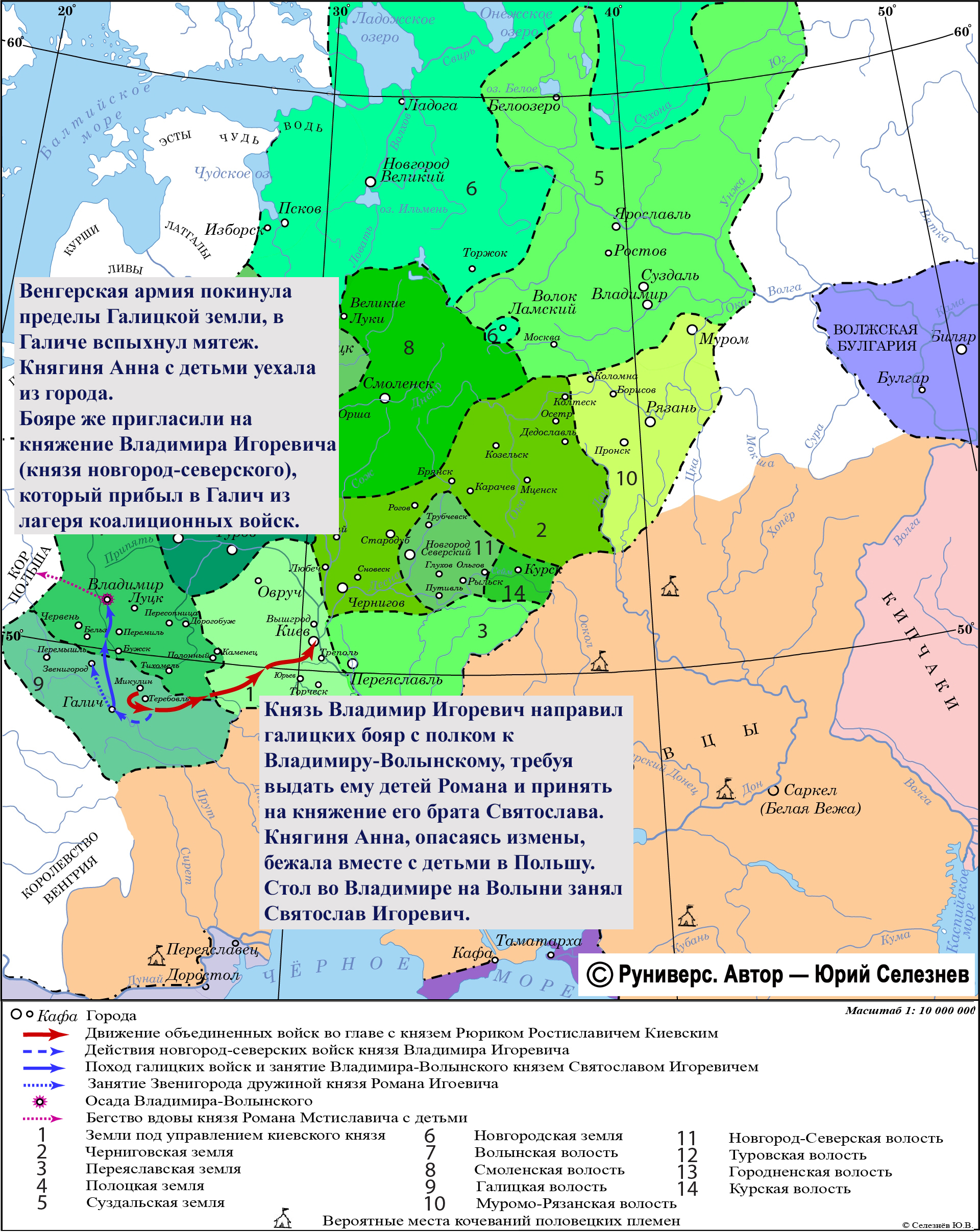 Венгерская армия покинула пределы Галицкой земли, и в Галиче вспыхнул мятеж. Княгиня Анна с детьми вынуждена была покинуть город. Бояре пригласили на княжение Владимира Игоревича (князя новгород-северского). Последний с братьями спешно покинул лагерь коалиционных войск, который располагался в двух днях пути от Галича, и прибыл в столицу княжества. Его брат Роман занял звенигородский стол.
