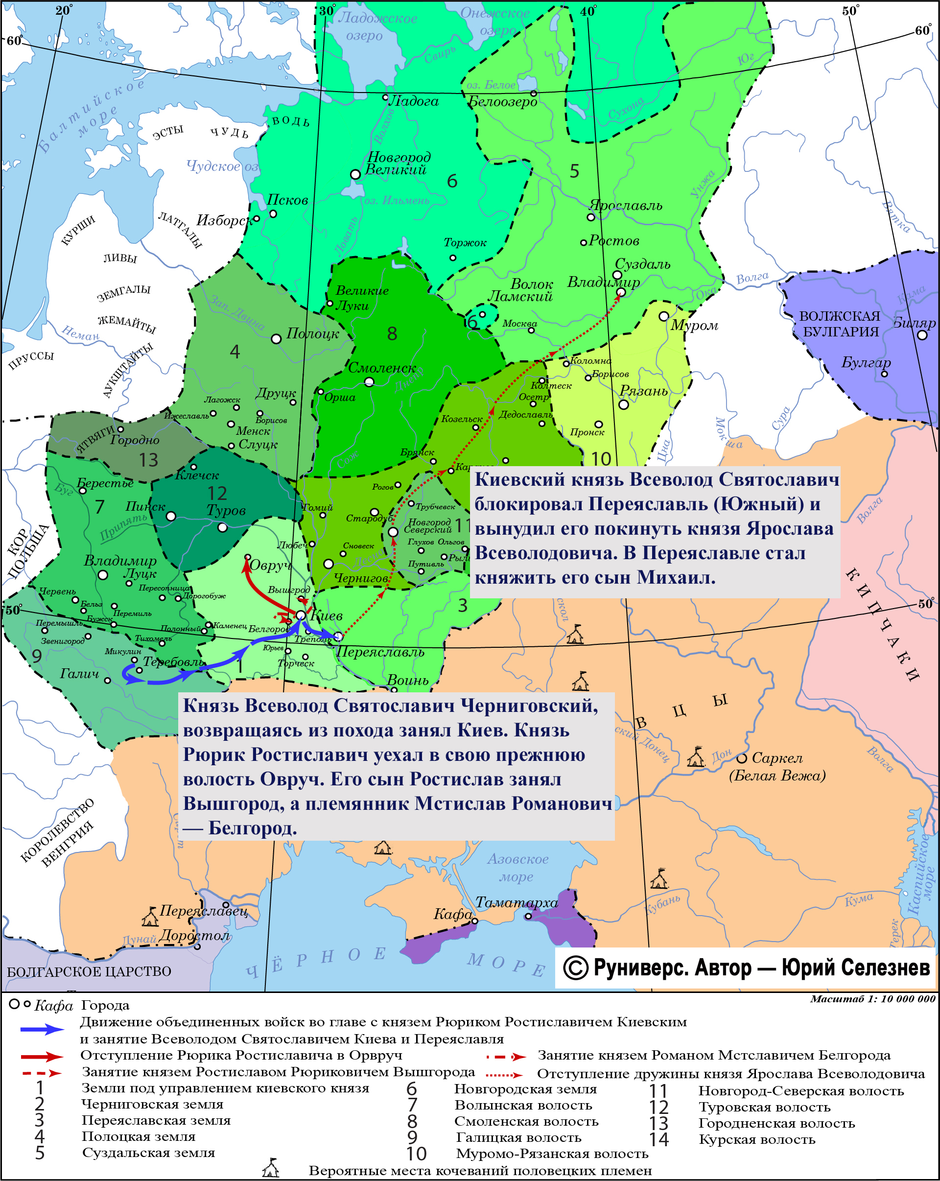 Киевский князь Всеволод Святославич блокировал Переяславль (Южный) и вынудил его покинуть князя Ярослава Всеволодовича. В Переяславле стал княжить его сын Михаил.