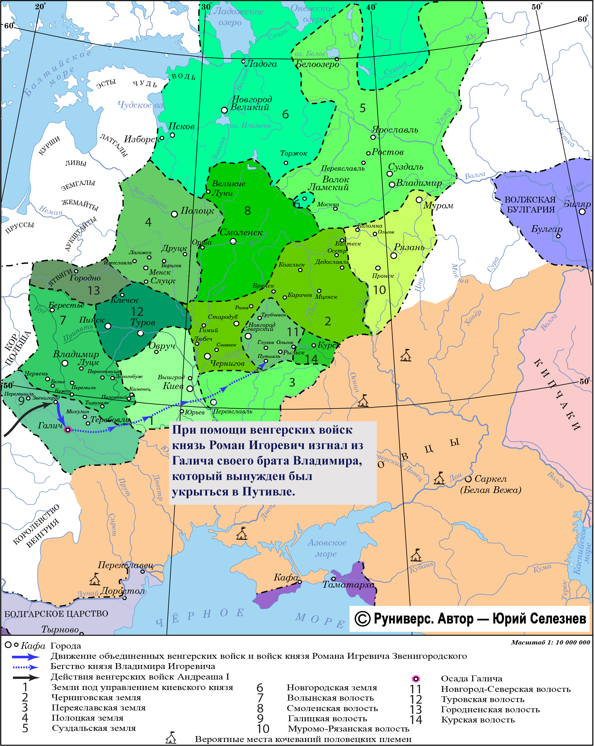 При помощи венгерских войск князь Роман Игоревич изгнал из Галича своего брата Владимира, который вынужден был укрыться в Путивле.