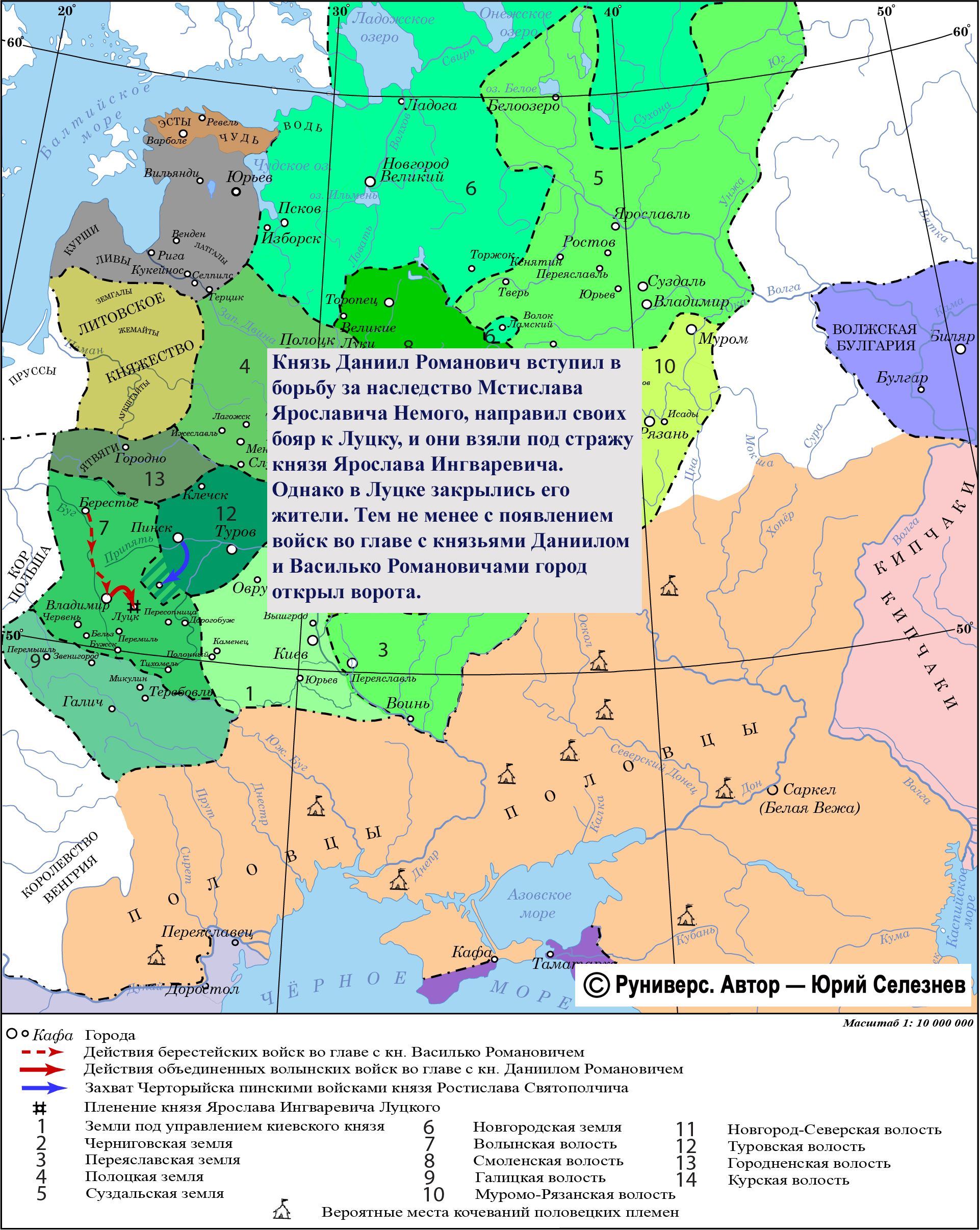 Князь Даниил Романович вступил в борьбу за наследство Мстислава Ярославича Немого, который, в нарушение прав своих старших племянников Ингваревичей, оставил, умирая, Луцкое княжество Даниилу, поручив ему и своего сына Ивана. Однако после смерти князя Мстислава Ярославича Луцк был занят князем Ярославом Ингваревичем, а Черторыйск – пинскими князьями. Даниил Романович же заявил свои права на эти города.