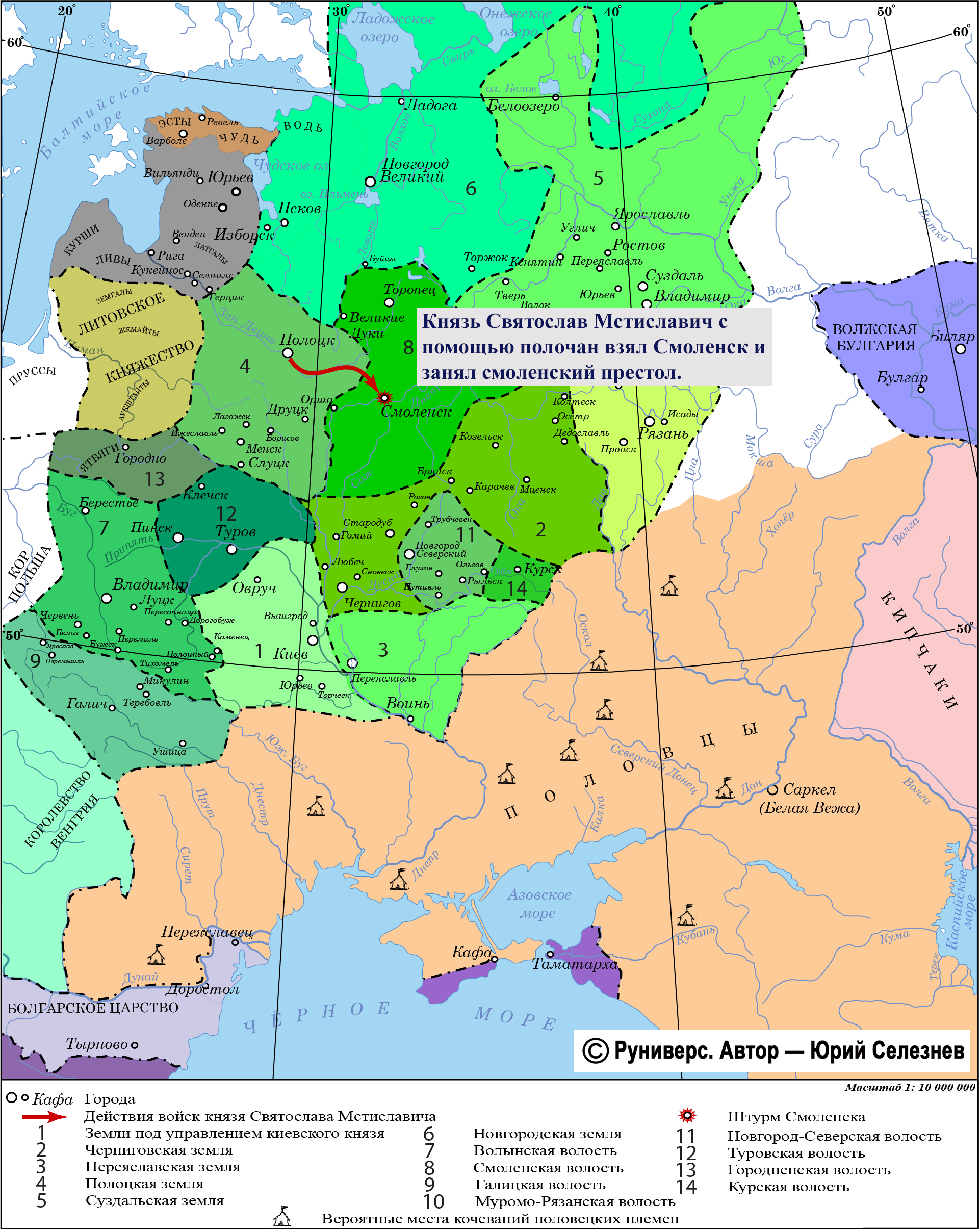 После смерти в 1230 г. Мстислава Давидовича князь Святослав Мстиславич должен был унаследовать смоленский стол. Однако по каким-то причинам этого не произошло, и ему пришлось силой оружия устанавливать в Смоленске свою власть. В 1232 г. князь Святослав с помощью полочан взял Смоленск и занял смоленский престол.