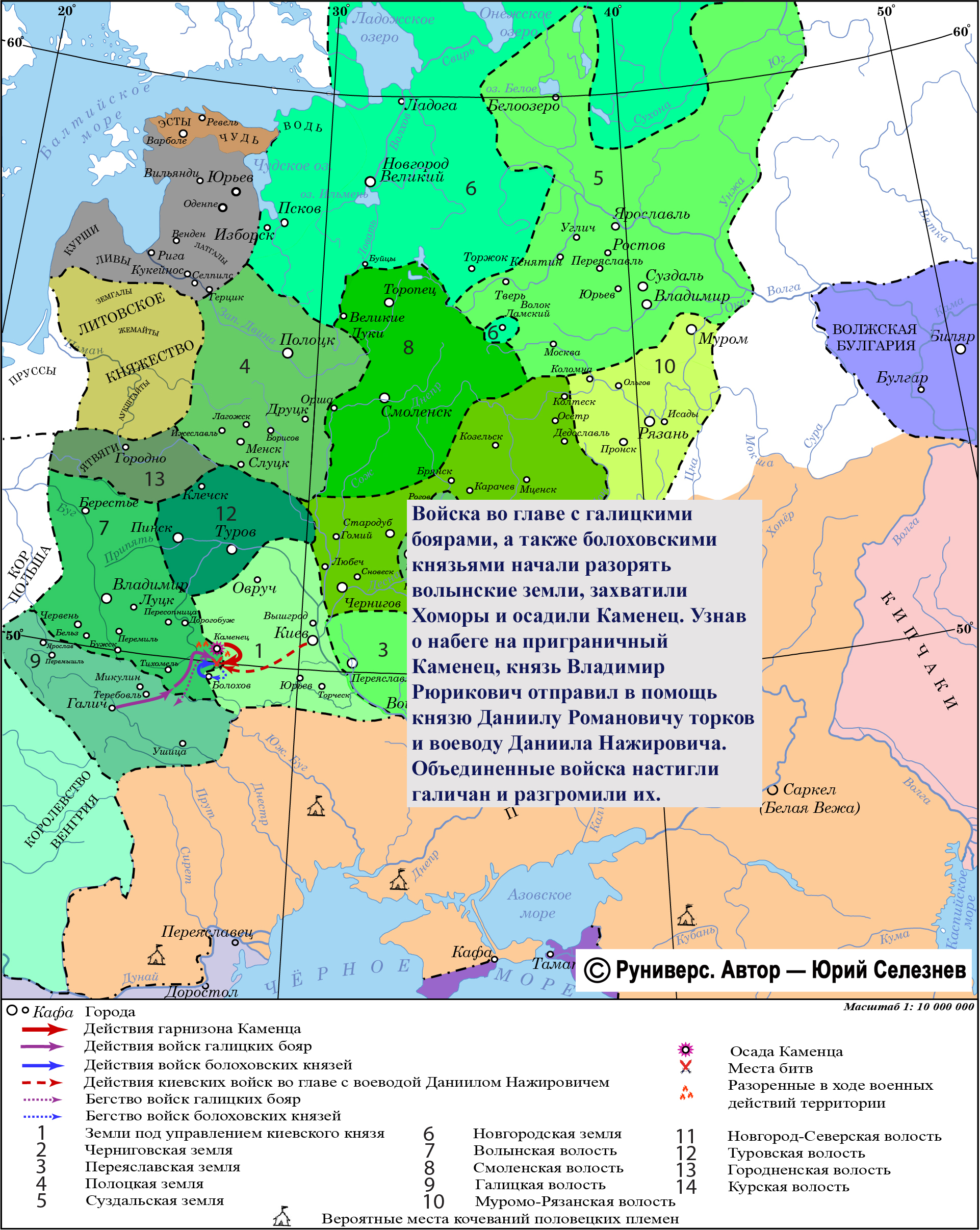 Войска во главе с галицкими боярами, а также болоховскими князьями начали разорять волынские земли, захватили Хоморы и осадили Каменец. После недолгой осады они начали отступление. Узнав о набеге на приграничный Каменец, князь Владимир Рюрикович, вернувшийся на княжение в Киев, отправил в помощь князю Даниилу Романовичу торков и воеводу Даниила Нажировича. А из Каменца вышел гарнизон. Объединенные войска настигли галичан и разгромили их. Пленников доставили во Владимир-Волынский ко двору князя Даниила Романовича.