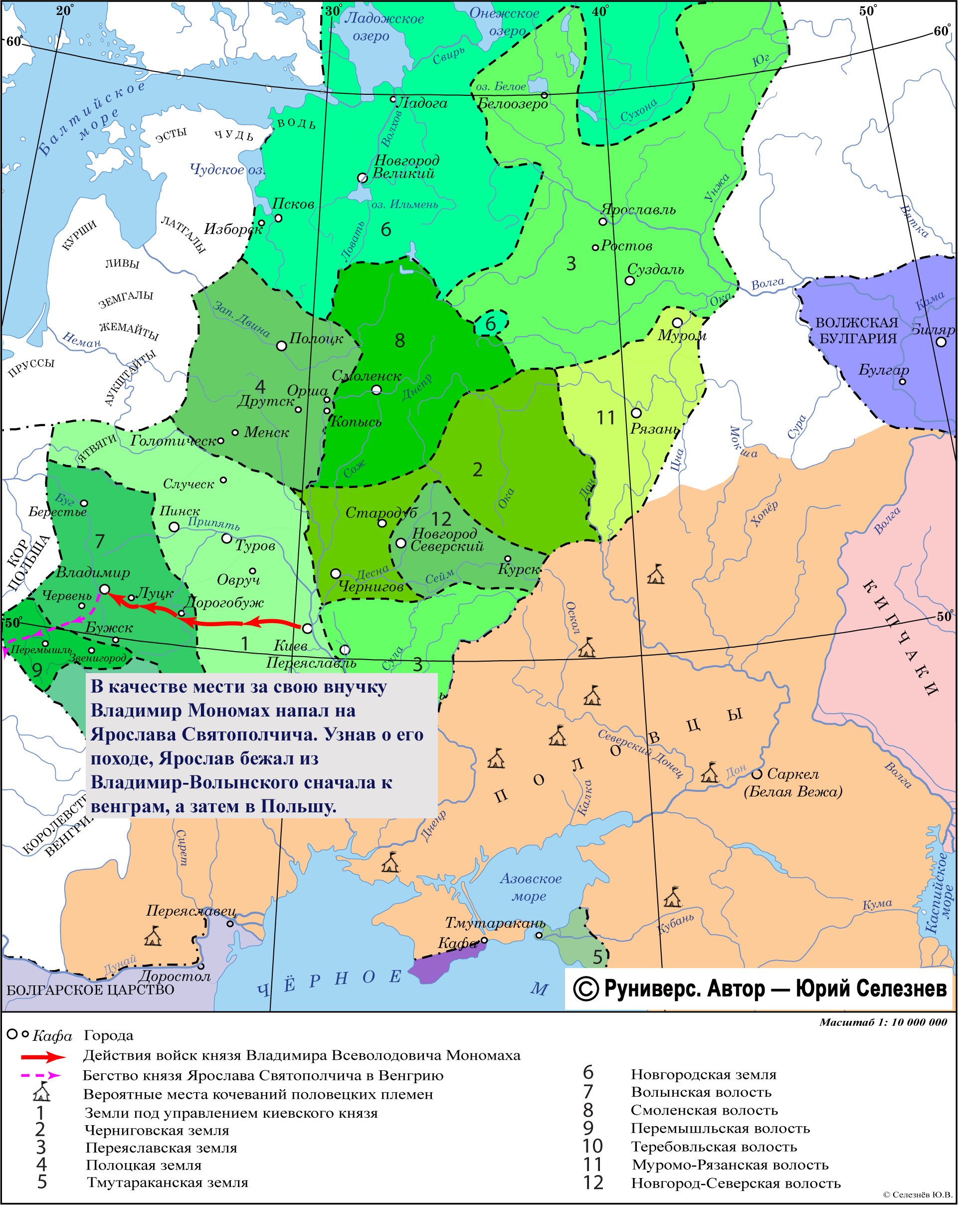 В качестве мести за свою внучку Владимир Мономах напал на Ярослава Святополчича. Узнав о его походе, Ярослав бежал из Владимир-Волынского сначала к венграм, а затем в Польшу.
