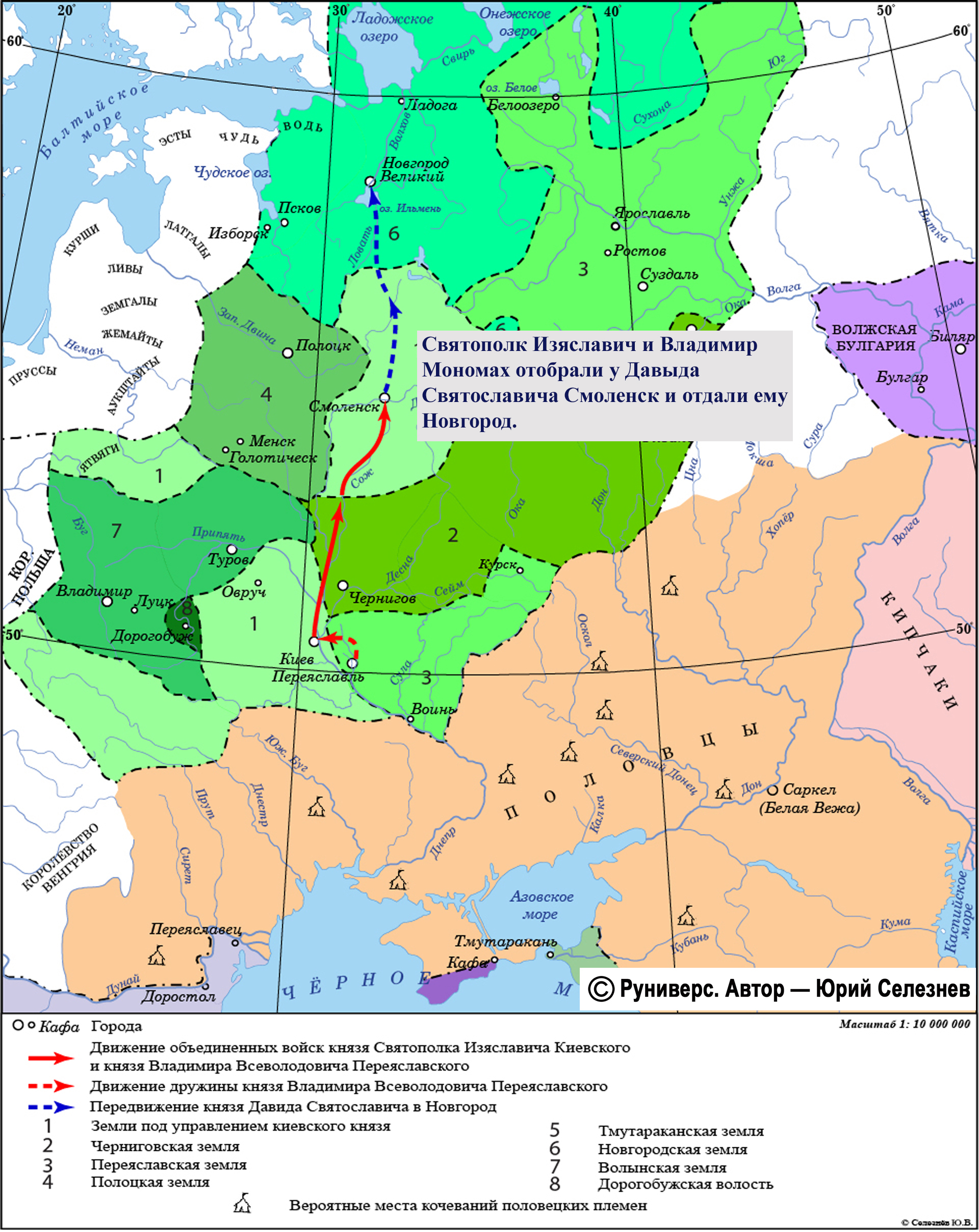 Святополк Изяславич и Владимир Мономах отобрали у Давыда Святославича Смоленск и отдали ему Новгород.