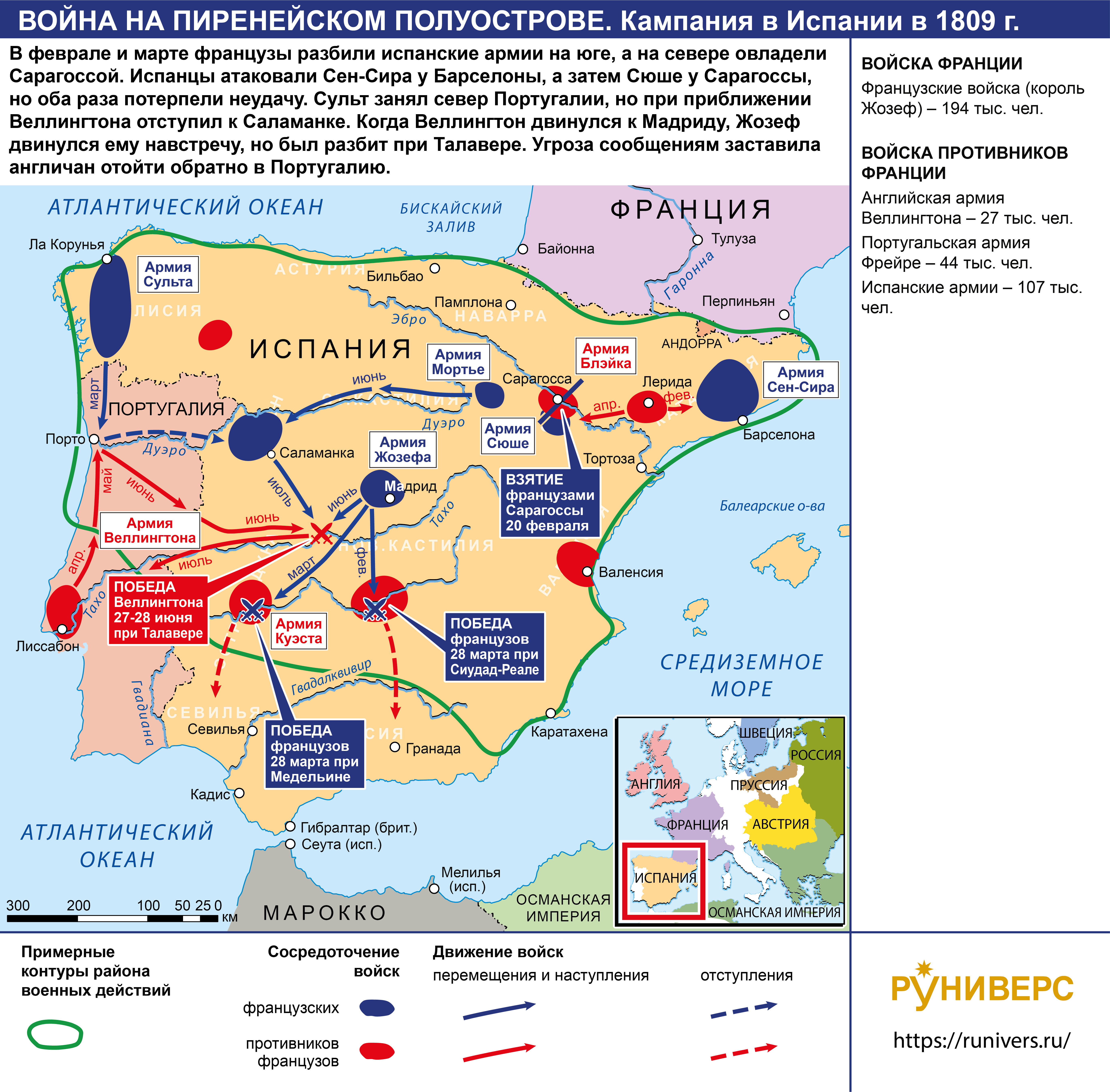 Наполеоновские войны. Война на Пиренейском полуострове. Кампания в Испании в 1809 г.