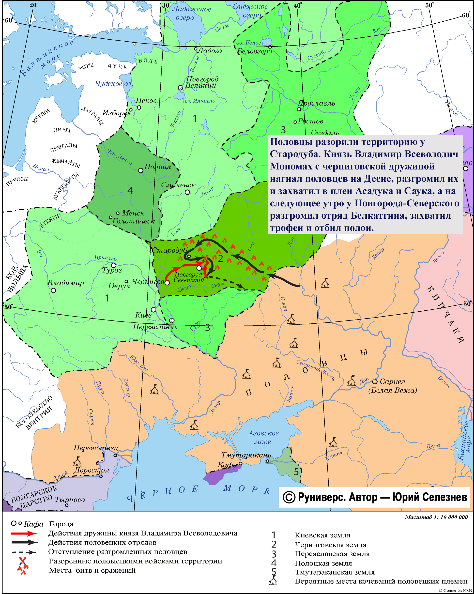 Половцы разорили территорию у Стародуба. Князь Владимир Всеволодич Мономах с черниговской