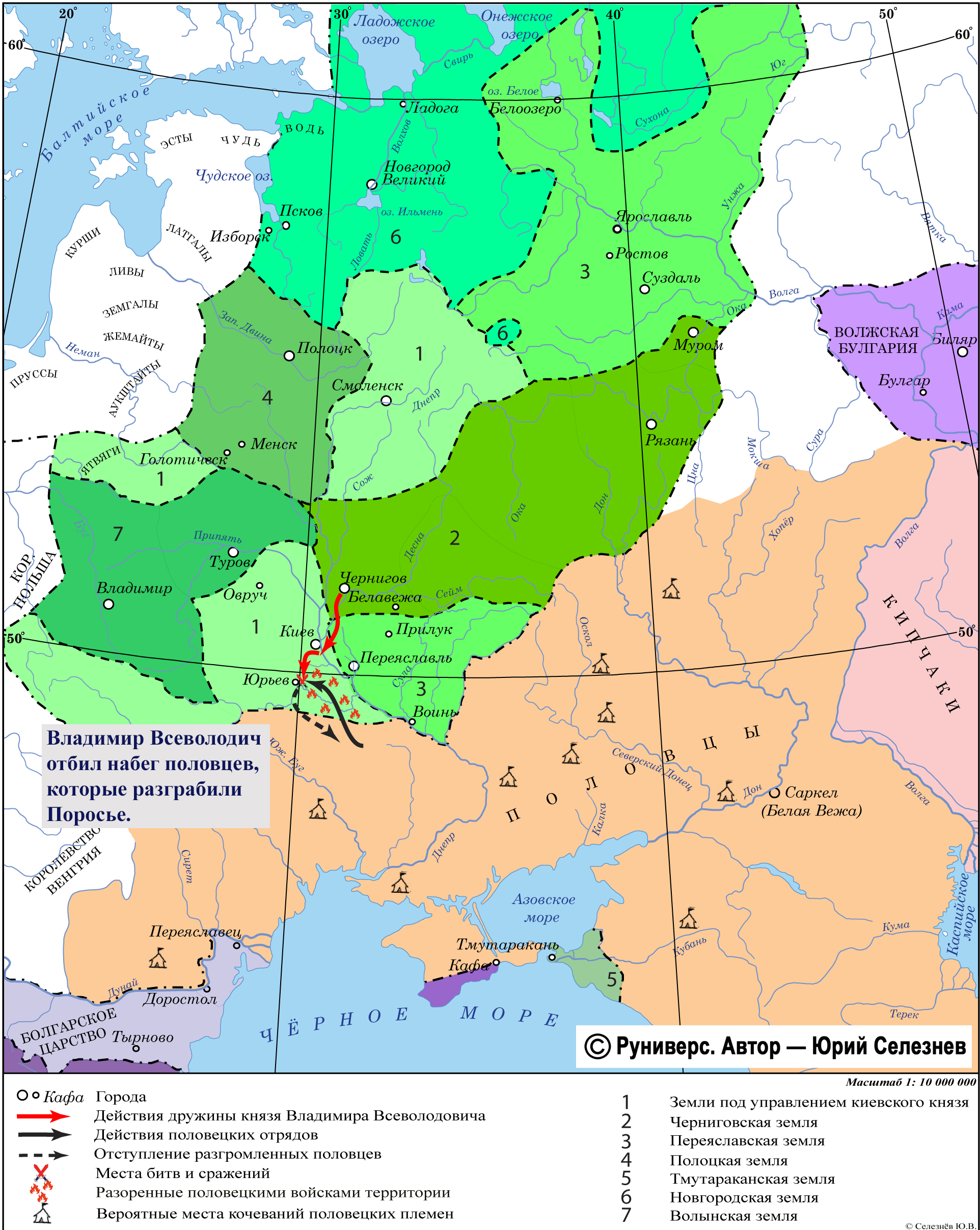 Владимир Всеволодич отбил набег половцев, которые разграбили Поросье.