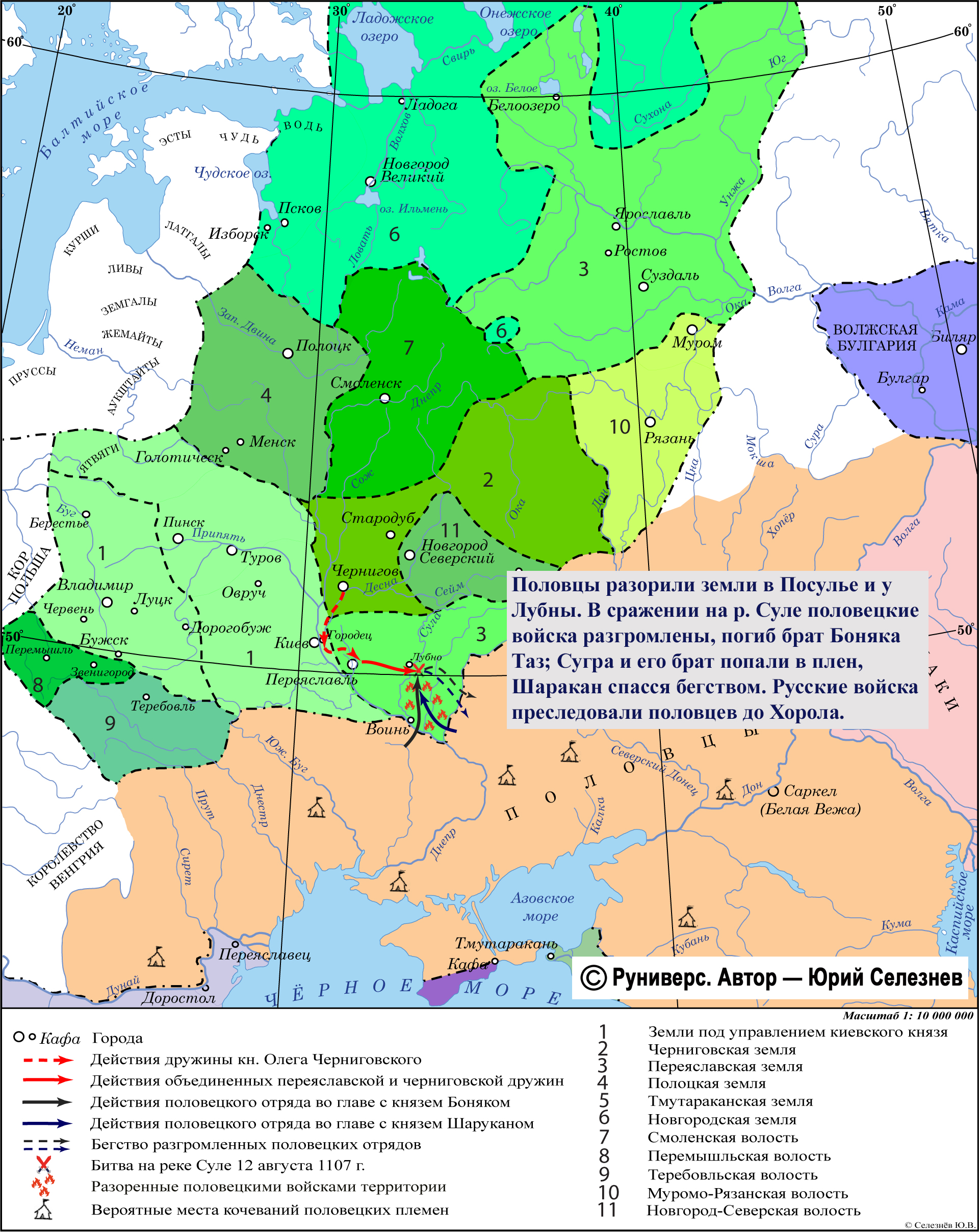 Половцы разорили земли в Посулье и у Лубны. В сражении на р. Суле половецкие войска разгромлены, погиб брат Боняка Таз; Сугра и его брат попали в плен, Шаракан спасся бегством. Русские войска преследовали половцев до Хорола.